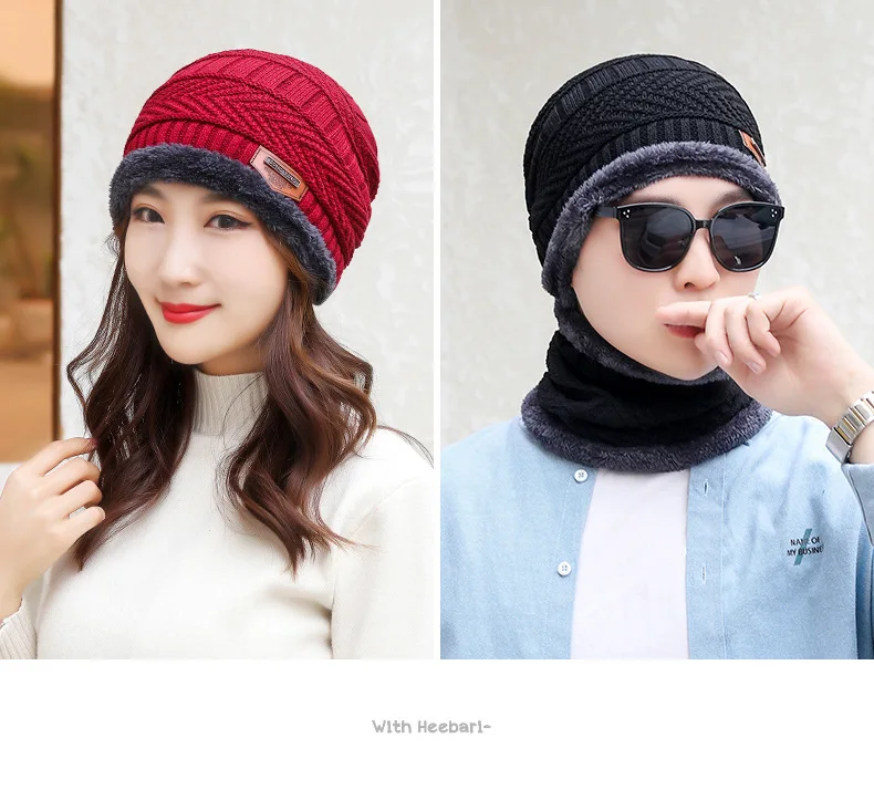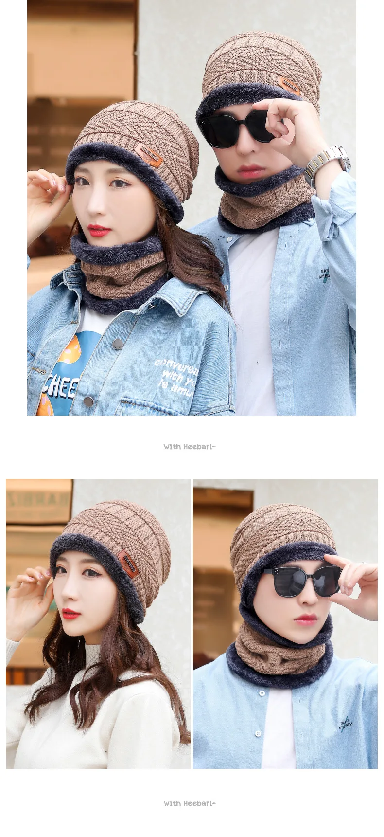 2020 зимняя шапка, набор шапки и шарфа теплая вязка, шляпа-Кепка с ...