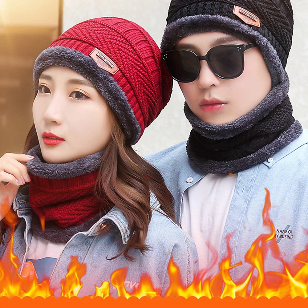 Зимняя Шапка-бини для мужчин, флисовый шарф для женщин и мужчин, вя...