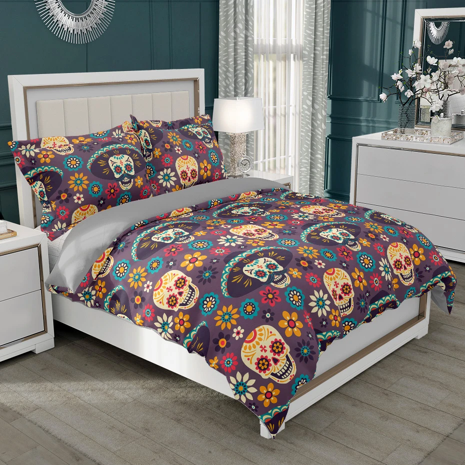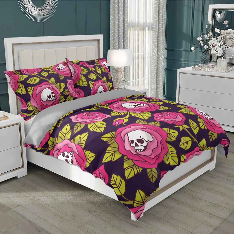 Комплект постельного белья с изображением черепа, цветка, черного роскошного Белого пододеяльника, королевы, короля, полный размер 240x220, для взрослых, с наволочкой, постельное белье