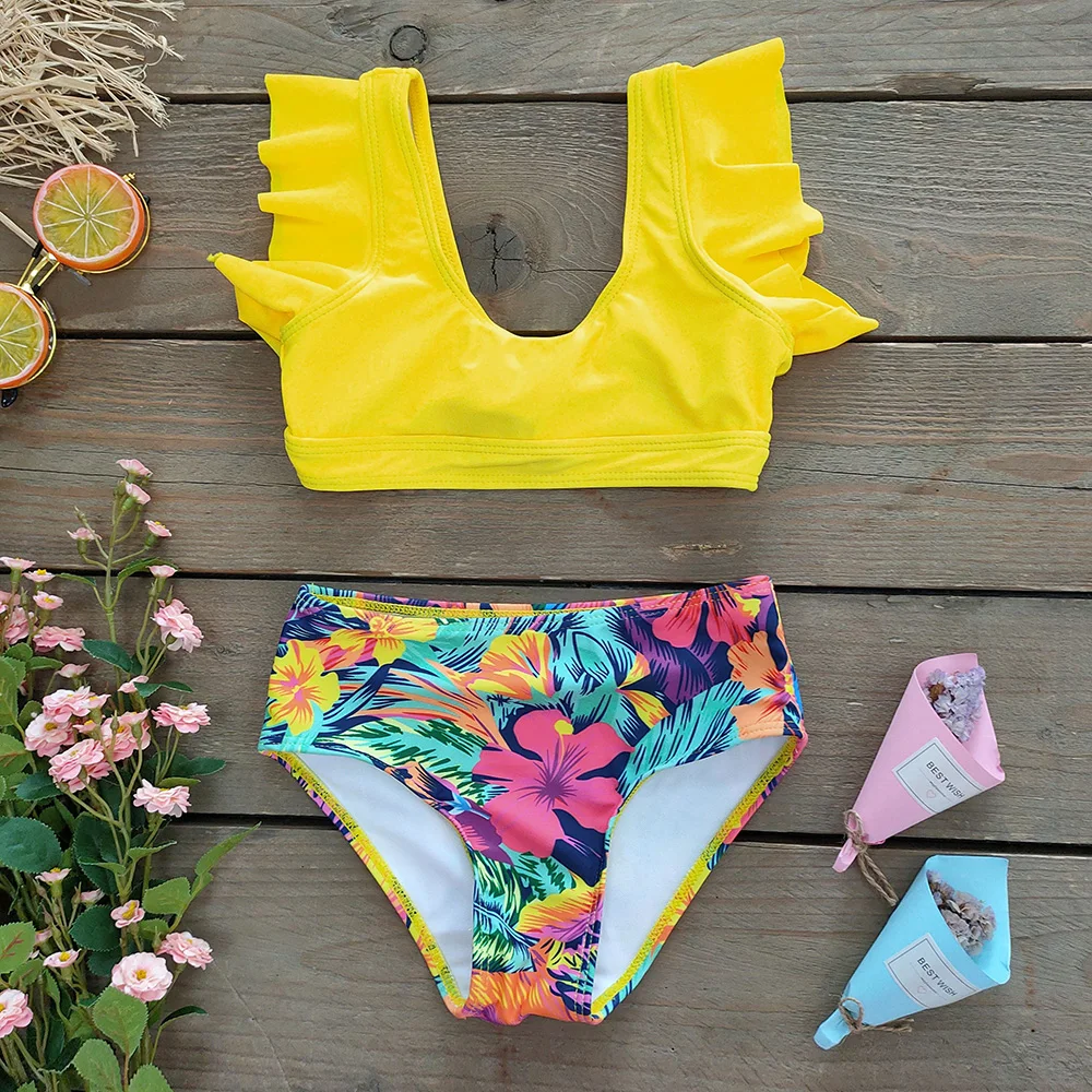 Женский цветочный комплект бикини, купальник для родителей и детей, бандажный купальник с оборками, пляжная одежда, бикини, 2021