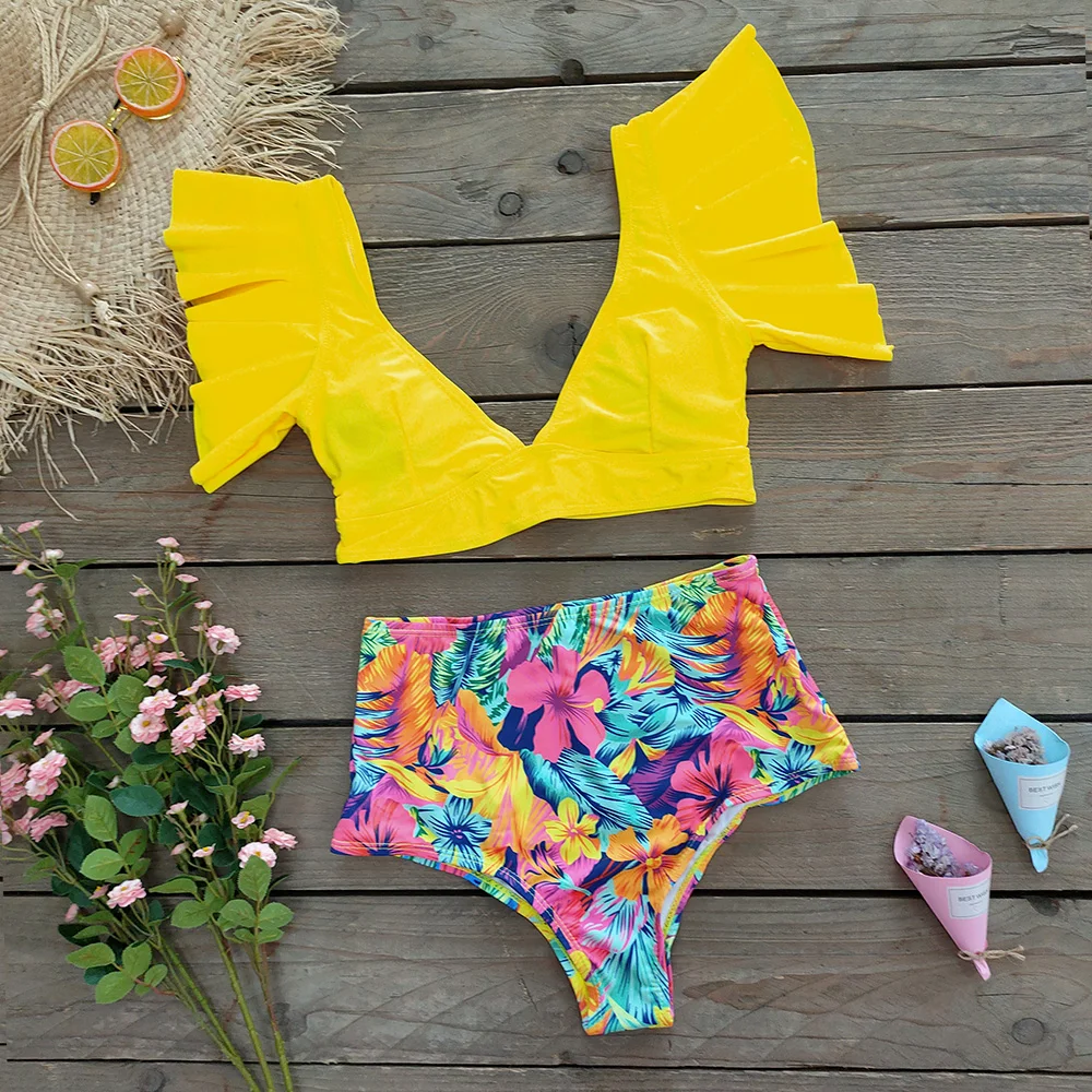 2021 сексуальный комплект бикини с высокой талией с оборками, купал...