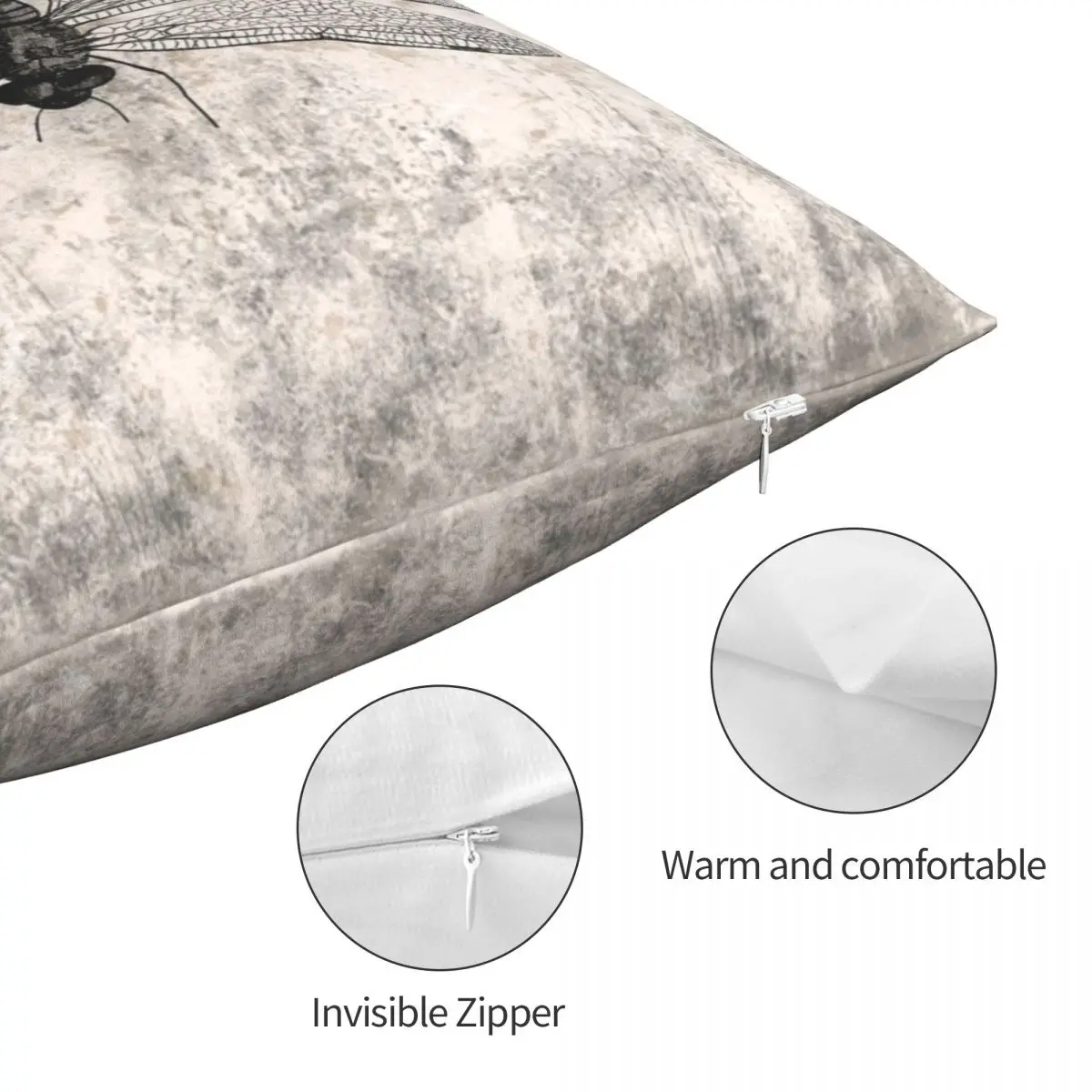 Наволочка для автомобильной подушки, винтажная, из чехол для подушки "Стрекоза" полиэстера, льна, бархата, на молнии, 45x45
