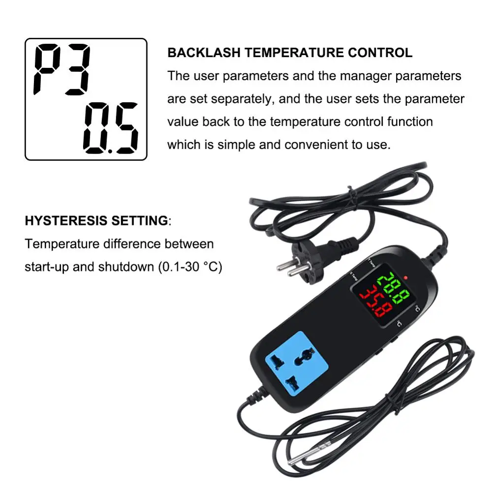 1. С большим и четким светодиодный двойной дисплей для лучшей читаемости. 2. Широкий диапазон измерения температуры-40 ~ 120 градусов (-40 ~ 248 по Фаренгейту). 3. Охлаждение и контроль нагрева, оснащен шнуром питания.