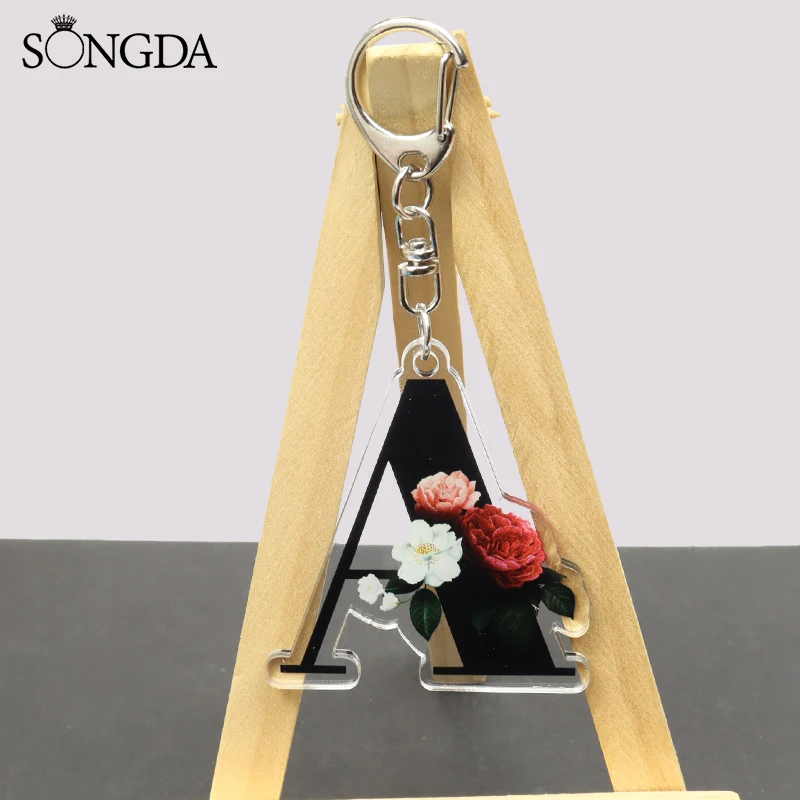 26 оригинальных букв, акриловый брелок с цветочным дизайном