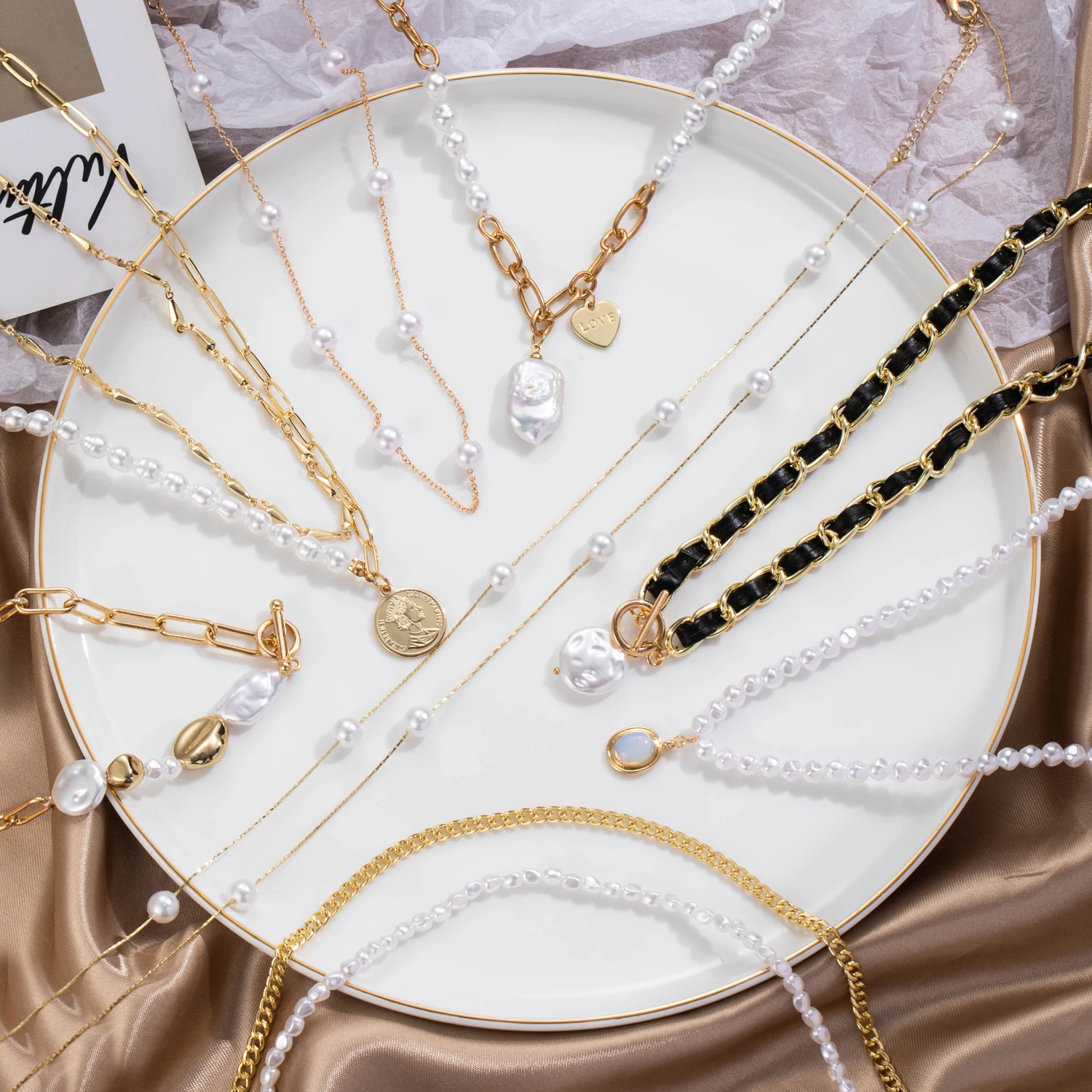 новое модное жемчужное ожерелье для женщин, белое имитационное нере...