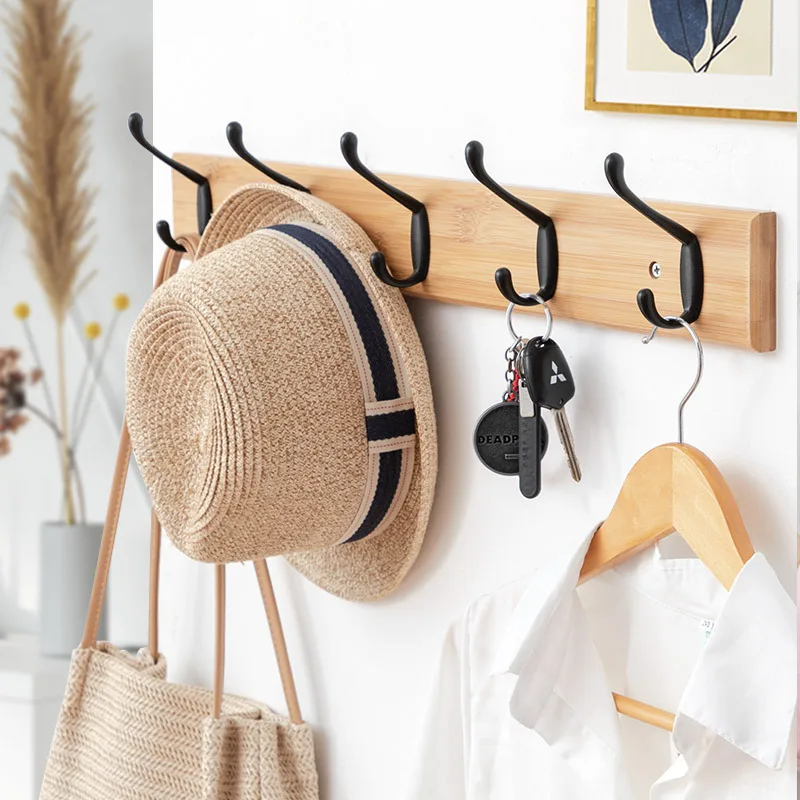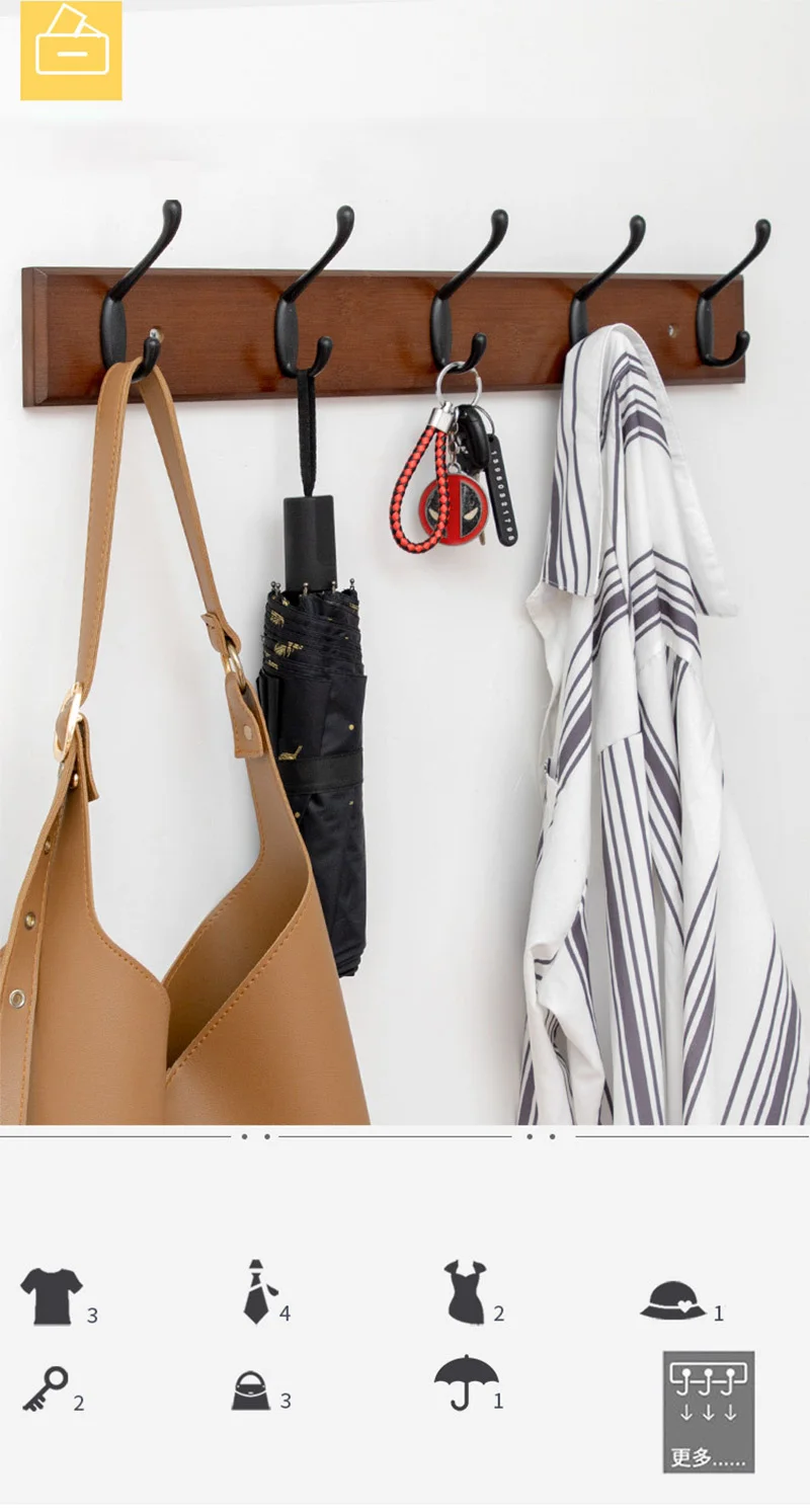 Бамбуковая вешалка для пальто, двойные настенные крючки для шляпы, ...