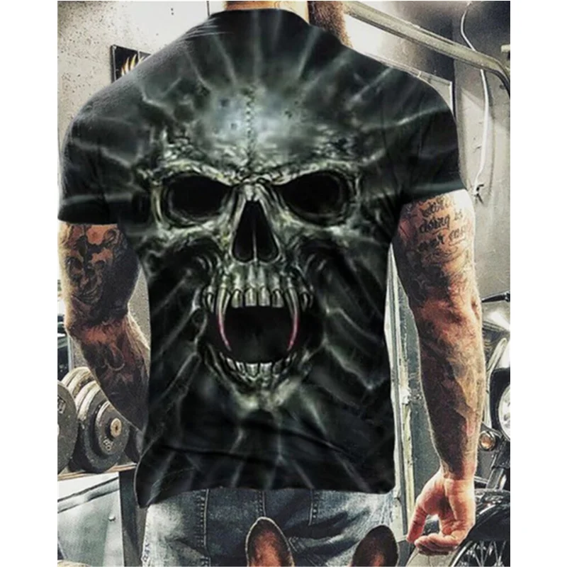 Футболка мужская с 3D-принтом черепа, модная летняя Повседневная дышащая рубашка оверсайз, с круглым вырезом и коротким рукавом
