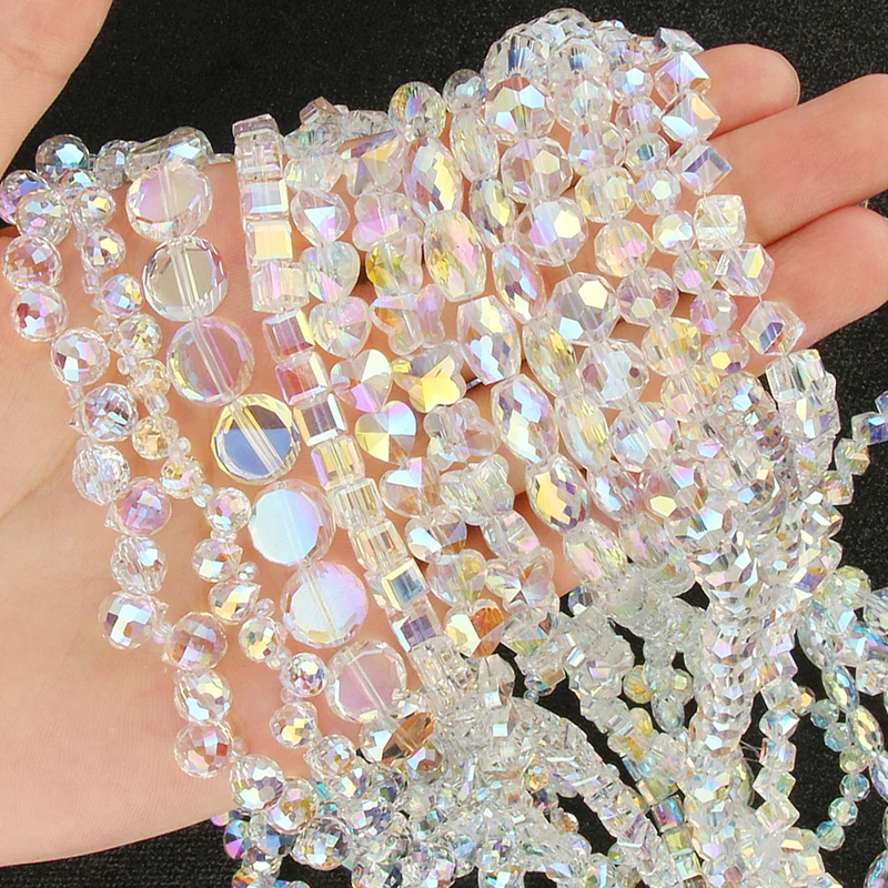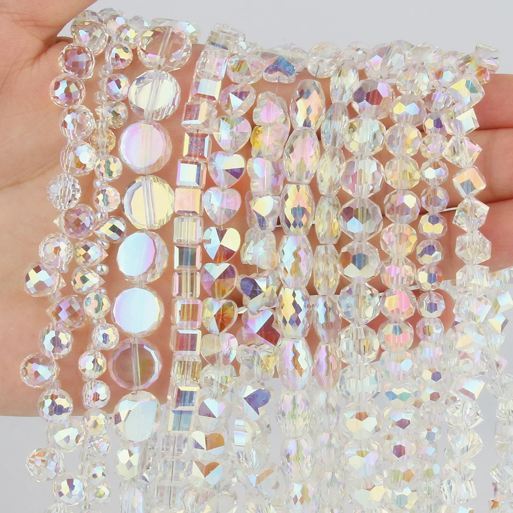 Бусины из натуральных чешских кристаллов AB, гладкие стеклянные бусины в форме сердца, незакрепленные бусины для изготовления ювелирных изделий, очаровательные аксессуары сделай сам 30 шт.лот