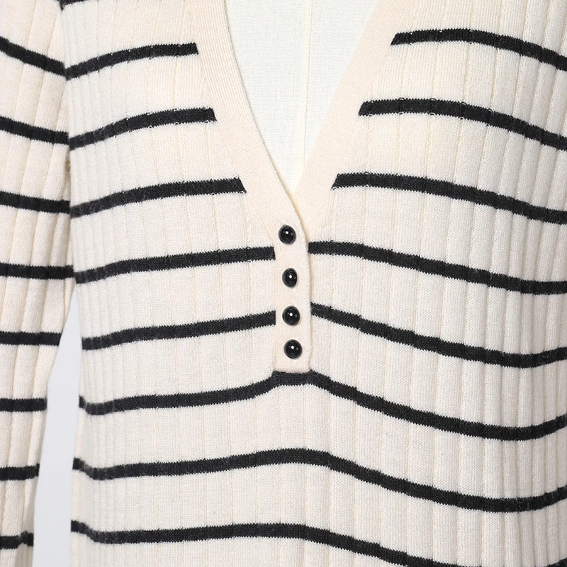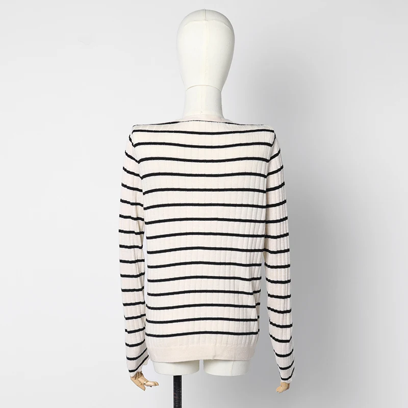 Женский свитер в полоску, элегантный винтажный пуловер с V-образным вырезом и длинными рукавами, Осень-зима 2022