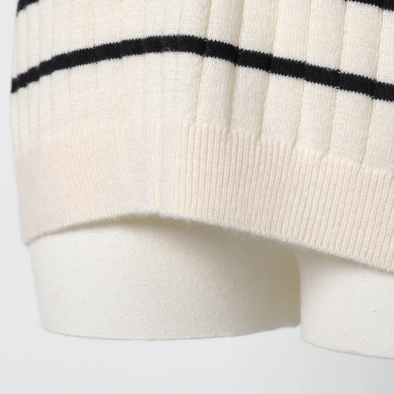 Пуловер женский трикотажный в полоску, свитер с длинным рукавом и к...