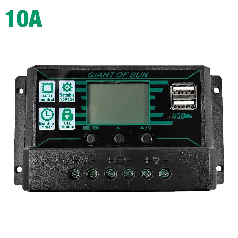 Контроллер заряда солнечной батареи MPPTPWM, интеллектуальный регулятор заряда солнечной панели, двойной USB-порт, ЖК-дисплей, 102030405060100A