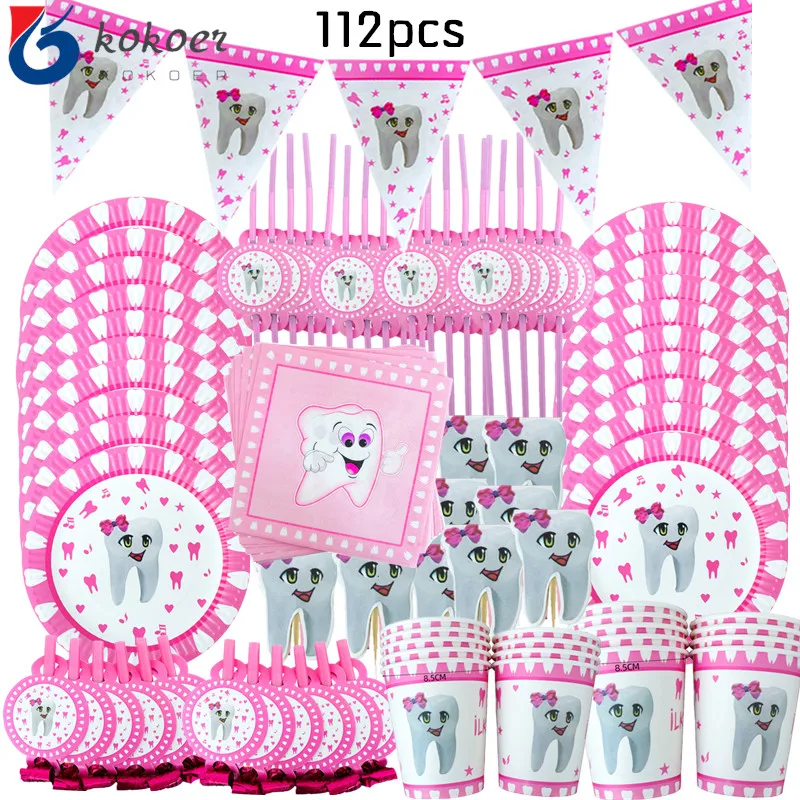 Девочка мой первый зуб Розовый декор для вечерние одноразовая посуд...