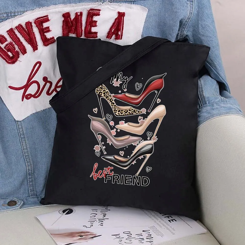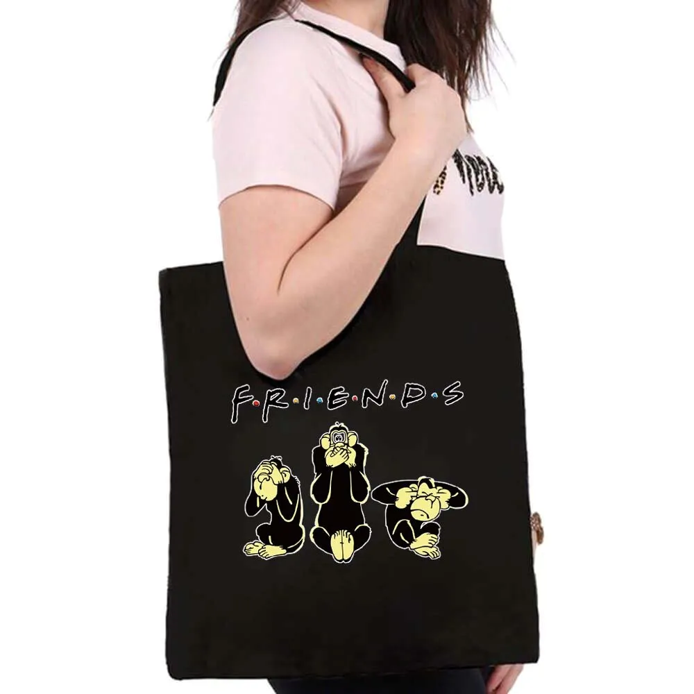 Женские сумки для покупок, модная черная сумка с принтом, Холщовая ...