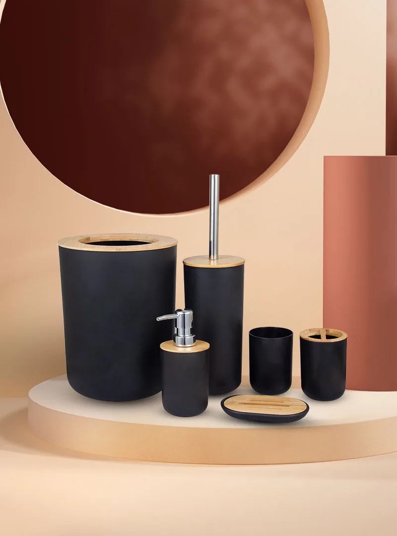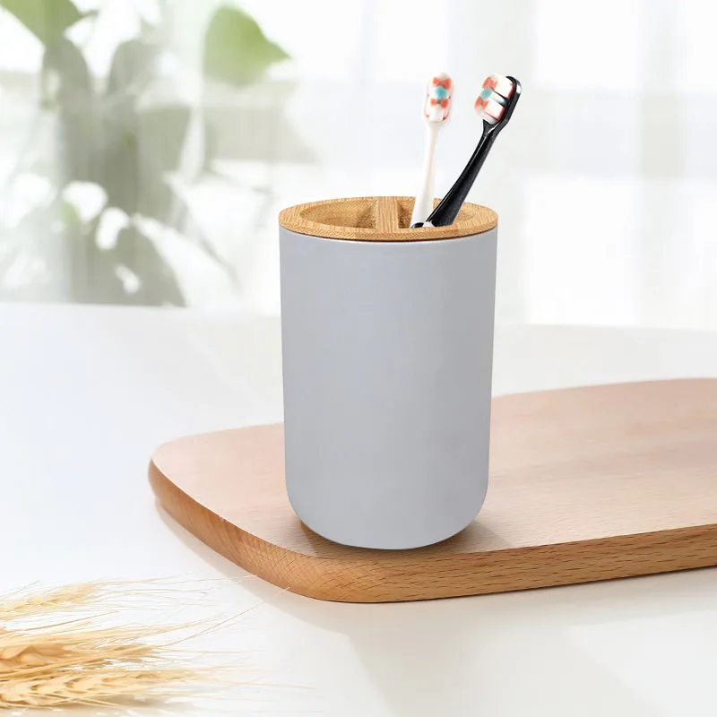 Набор аксессуаров для ванной из бамбука, 6 шт., пластиковый держатель для зубных щеток, держатель для мыльницы, ершика для унитаза, полоскания рта, чашки, украшения для ванной