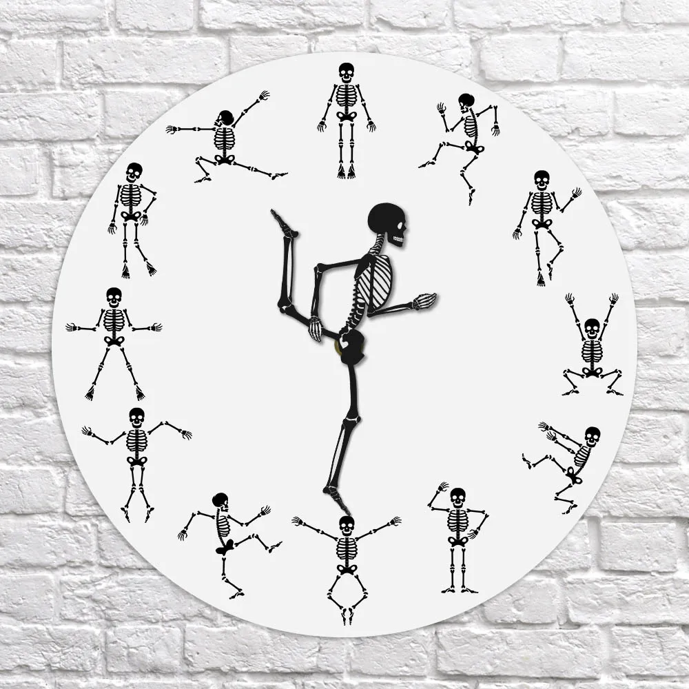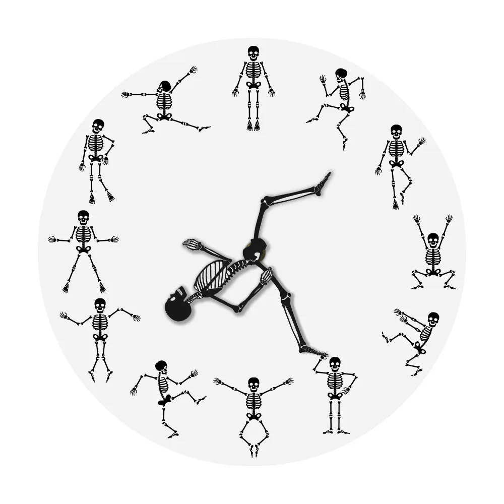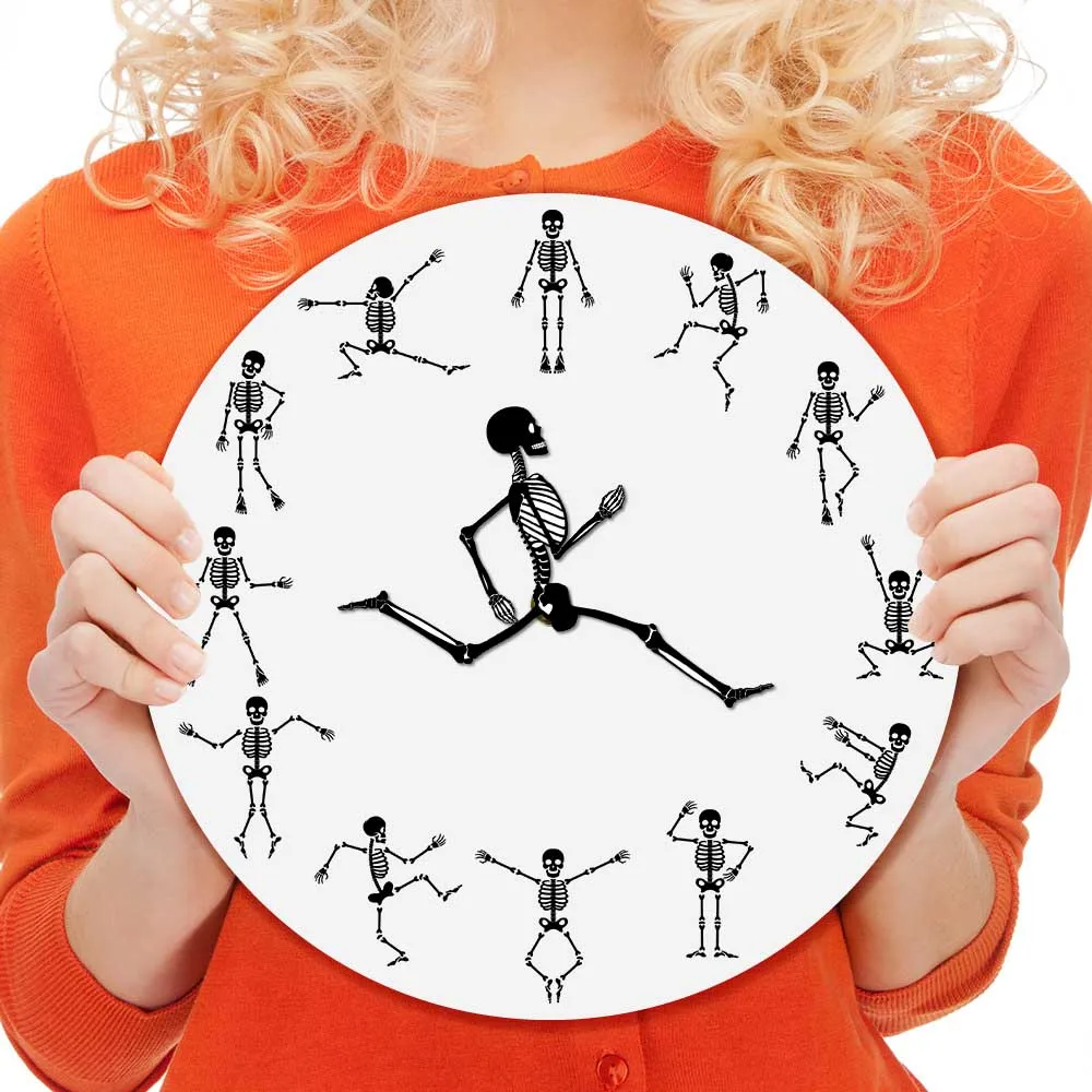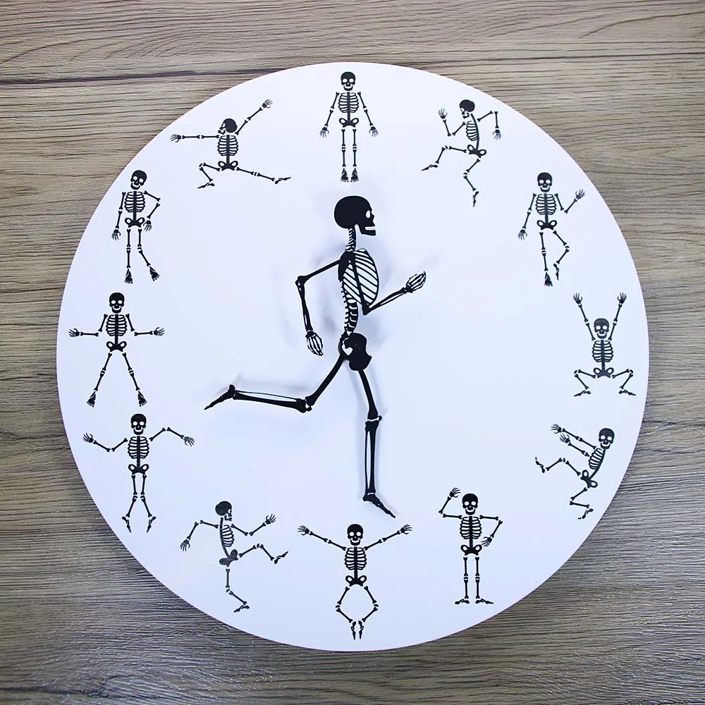 Настенные часы для бега, скелета, Хэллоуина, забавные настенные часы для танцев, прыжков, черепа, костей, новинка, бесшумные украшения вечерние, аксессуары, часы