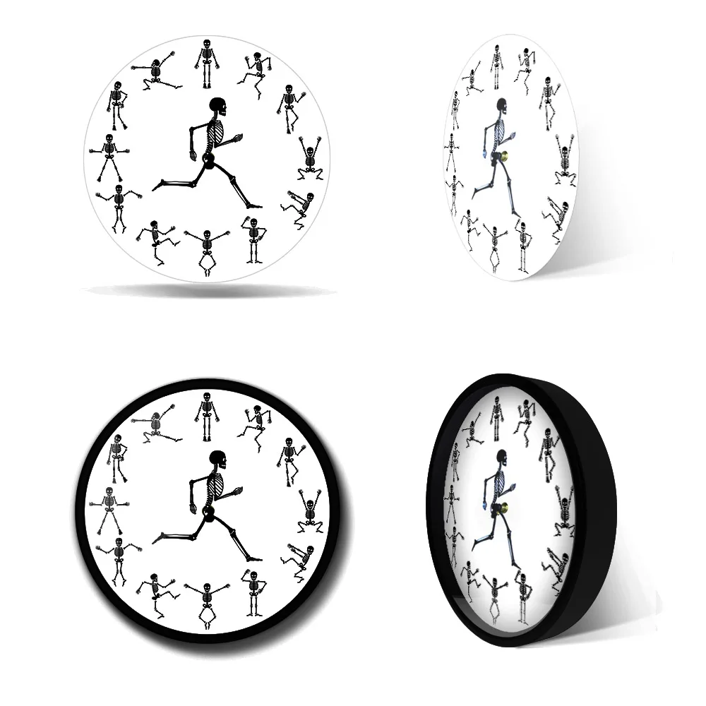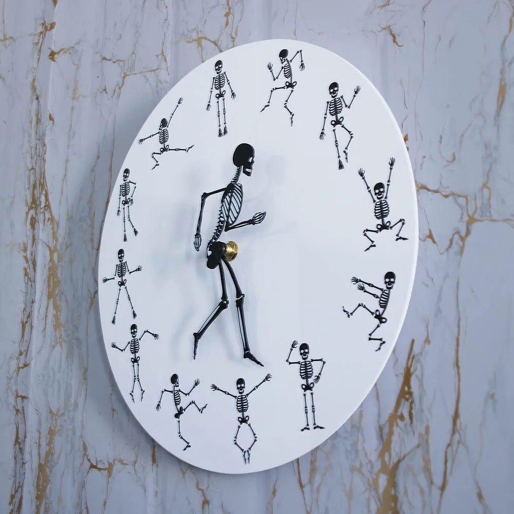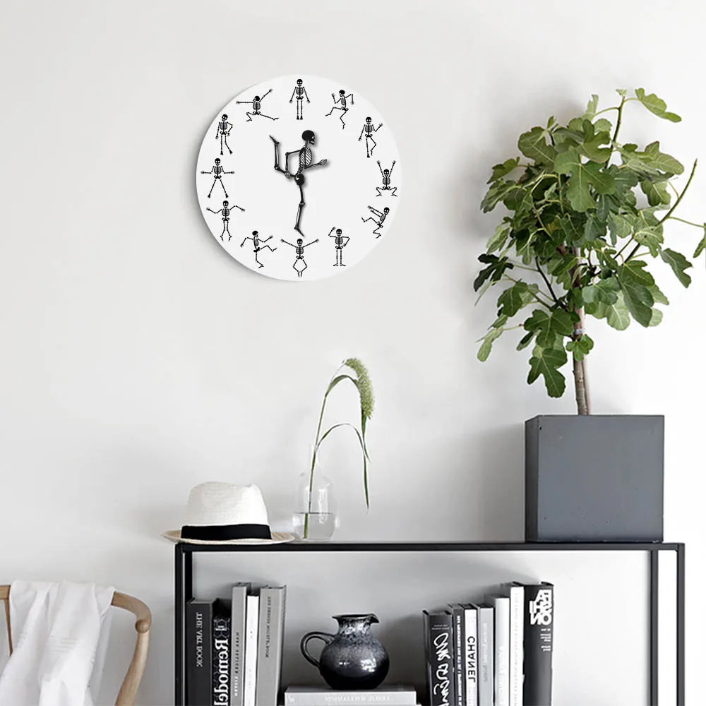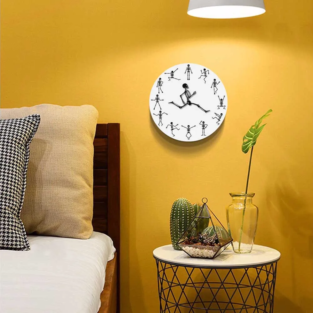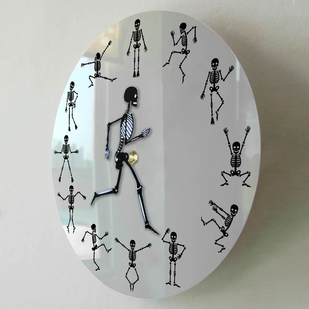 Настенные часы для бега, скелета, Хэллоуина, забавные настенные часы для танцев, прыжков, черепа, костей, новинка, бесшумные украшения вечерние, аксессуары, часы