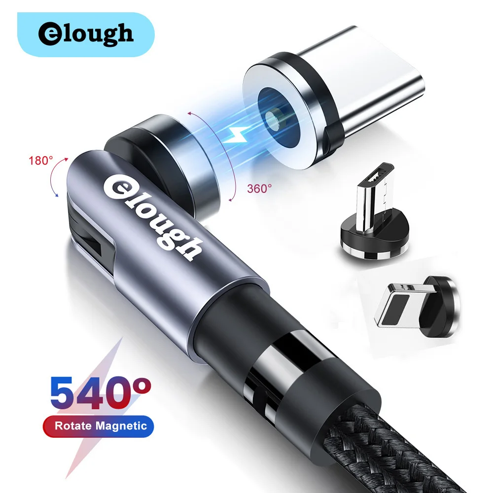Магнитный кабель Elough с поворотом на 540 градусов, 3 А, кабель для быстрой зарядки Micro USB Type-C, магнитное зарядное устройство для iPhone, Xiaomi, Huawei