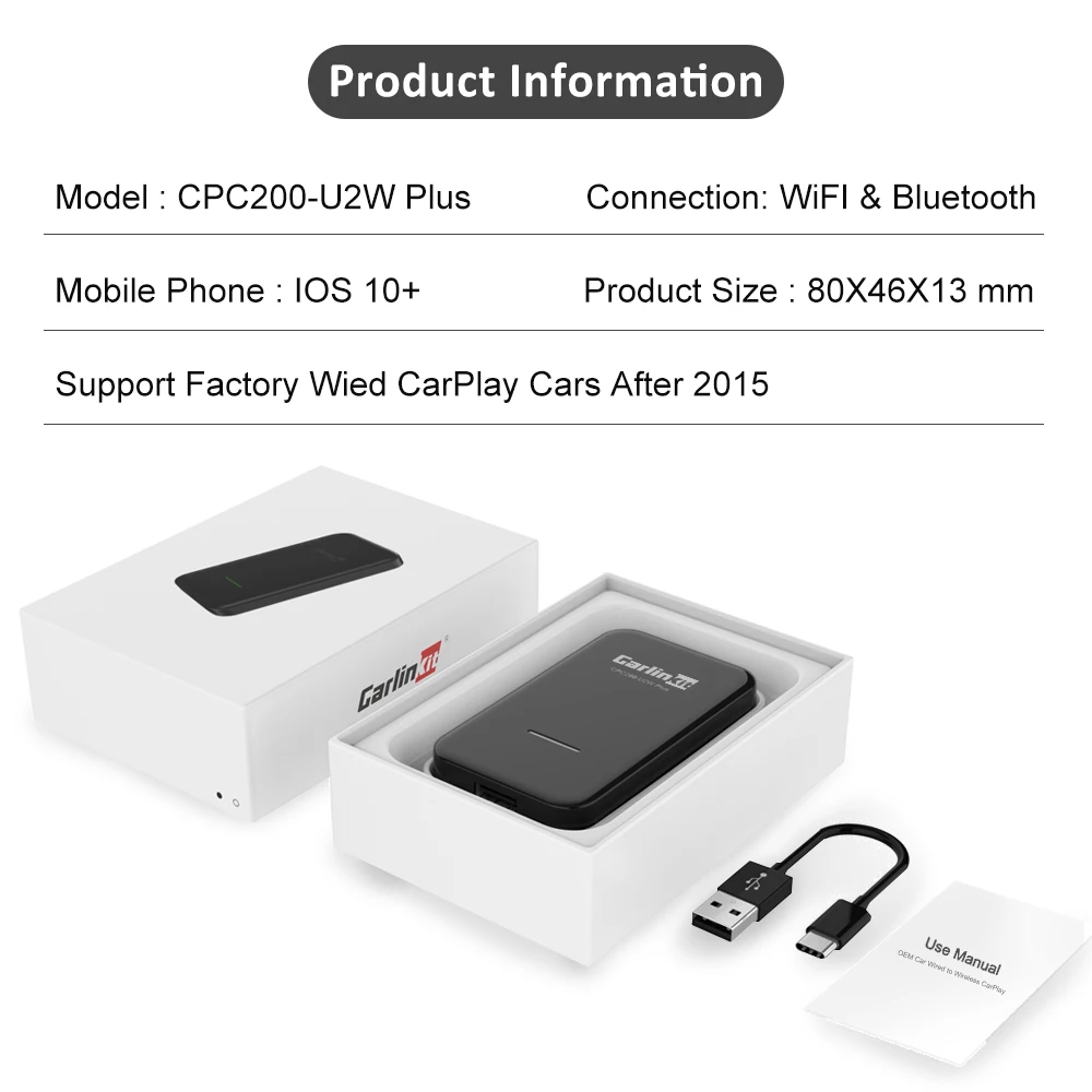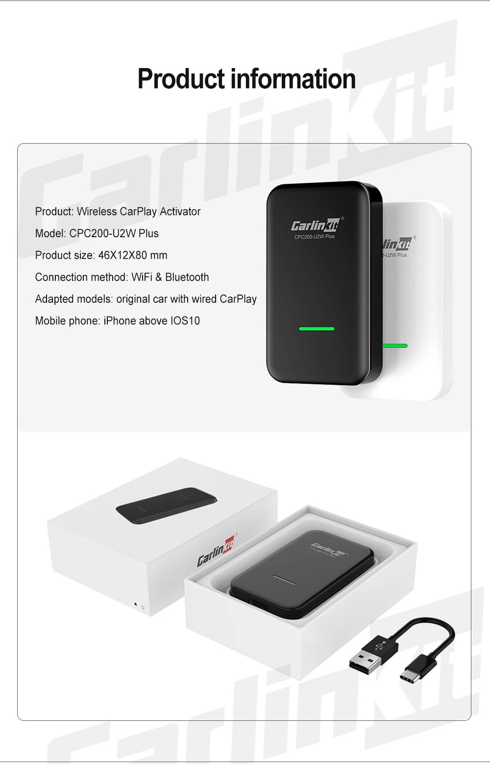 1. Новая версия: Carlinkit Wireless Carplay Activator Mini USB Dongle/пусть оригинальный автомобиль, встроенный в apple carplay, подключен к беспроводной carplay. (Больше моделей автомобилей и лет, пожалуйста, обратитесь к продавцу.)2. Простота в использовании: не нужно разбирать, подключать и играть немедленно. Мы разрабатываем и производим этот продукт для достижения проводного беспроводного использования.3. Совместимые устройства-: только поддержка моделей автомобилей с оригинальной CarPlay. Если вы хотите использовать ваш carplay по беспроводной связи, вы можете купить наш продукт. Наслаждайтесь вашим беспроводным автомобилем.4. Характеристики: он поддерживает кнопки рулевого колеса, управление ручкой, Голосовое управление (операция такая же, как и ваш оригинальный автомобиль).5. Бесплатное вождение и безопасное вождение: совершать/отвечать на звонки, проверять голосовые сообщения, текстовые сообщения и создавать карты. Слушайте ваши любимые песни с помощью приложений в формате «hands free», «apple music» или «apple music». Продукт поддерживает обновление прошивки.