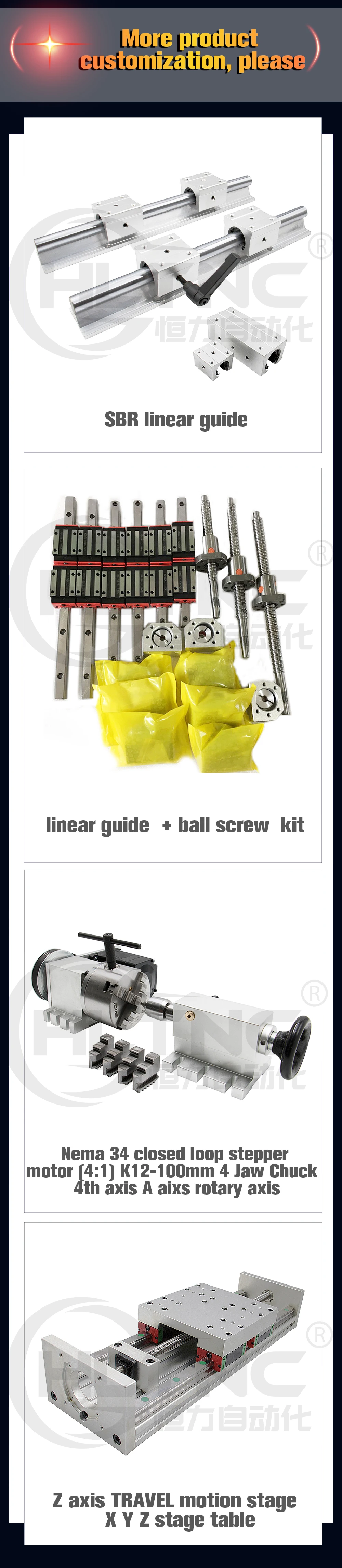 Настраиваемые все модели и длины линейных рельсов, шариковых винтов, моторных наборов, шпиндельные наборы, calble цепи для ЧПУ