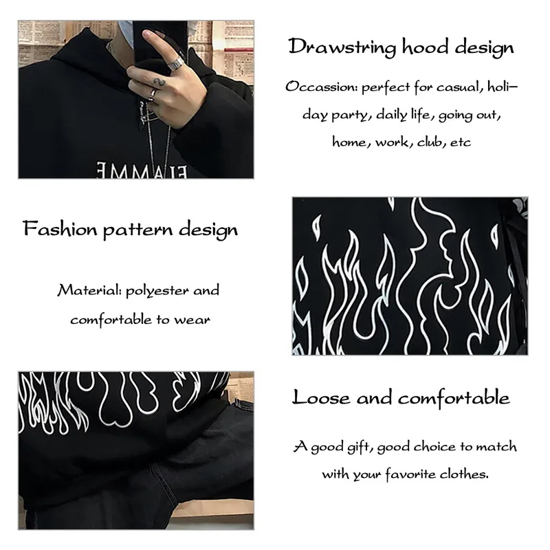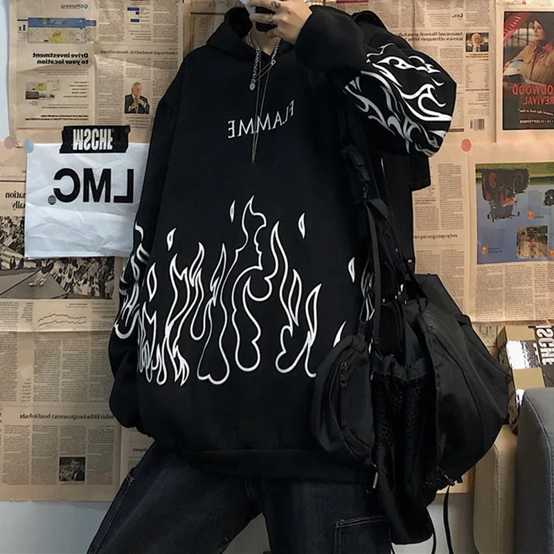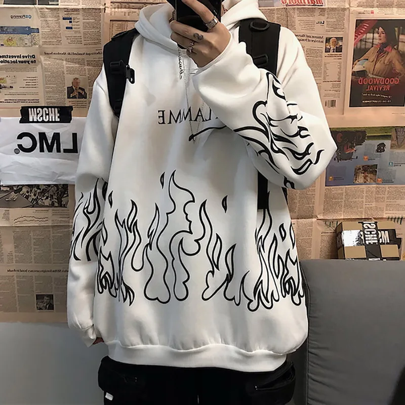 Толстовка мужская с принтом огня, Повседневная Свободная кофта в стиле Харадзюку, Свитшот в стиле хип-хоп, уличная одежда, унисекс, весна