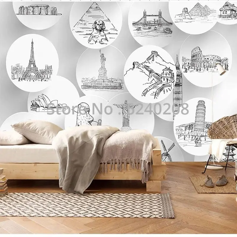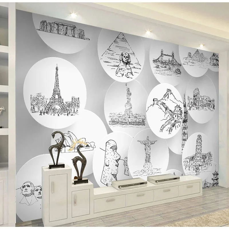 3D обои на заказ для гостиной, ТВ, фона, настенное украшение, картина с городом, достопримечательностью, наклейки, Фреска, бумага