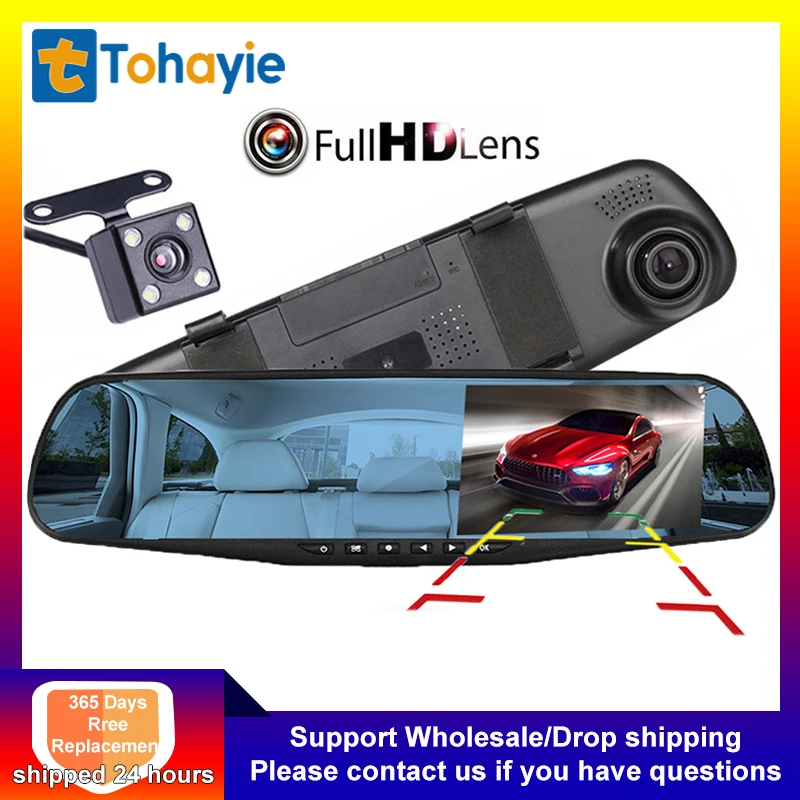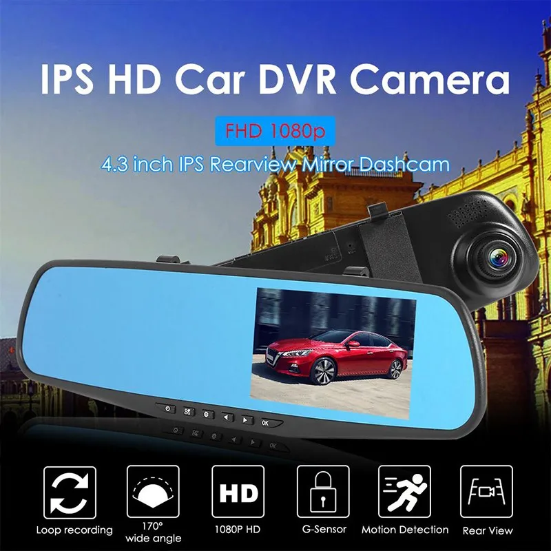 Видеорегистратор-зеркало, 1080P, 4,3 дюйма, Full зеркальная камера