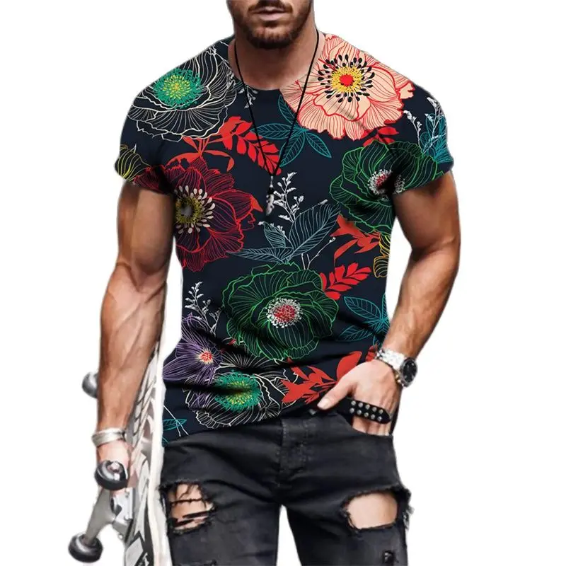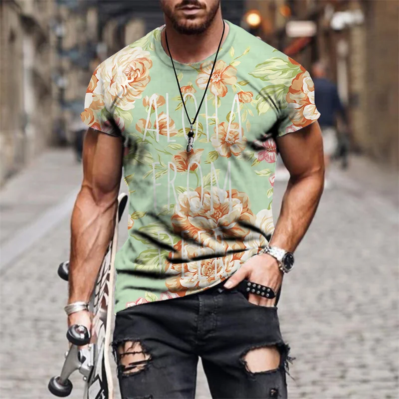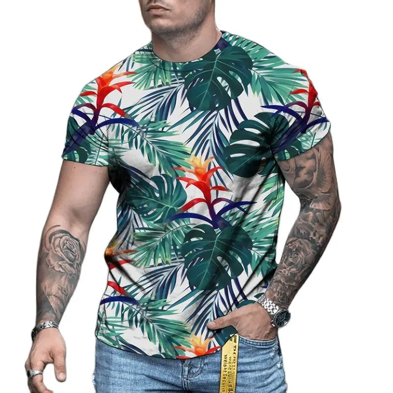 Мужская футболка с 3D-принтом растений, Повседневная модная легкая облегающая футболка с круглым вырезом для фитнеса, лето 2022