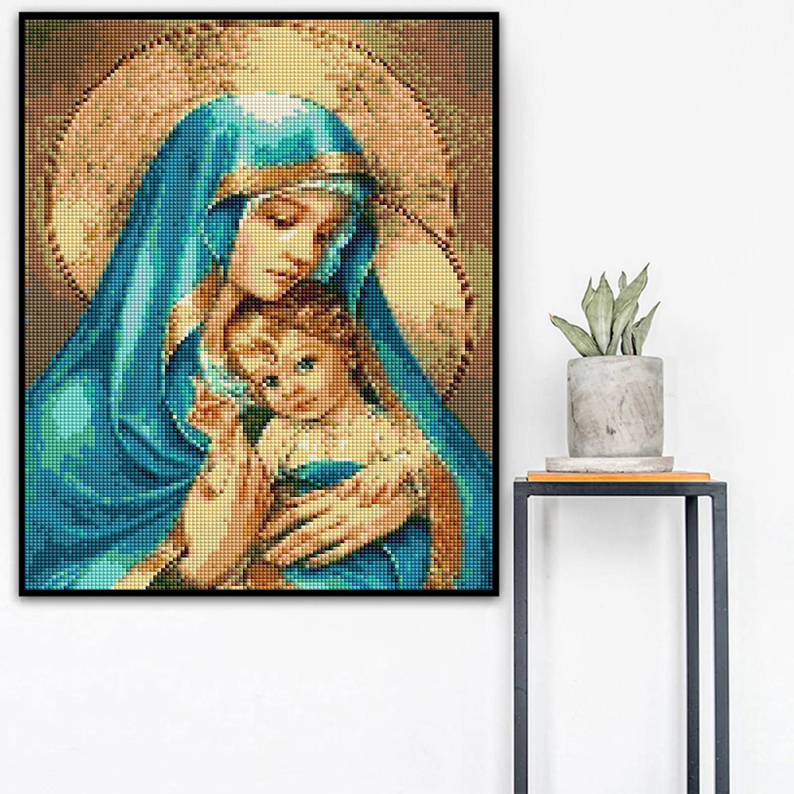Размер холста 5D DIY Алмаз полный квадратКруглые бриллианты религиозная Алмазная картина мозаичный портрет ручной работы Декор для дома