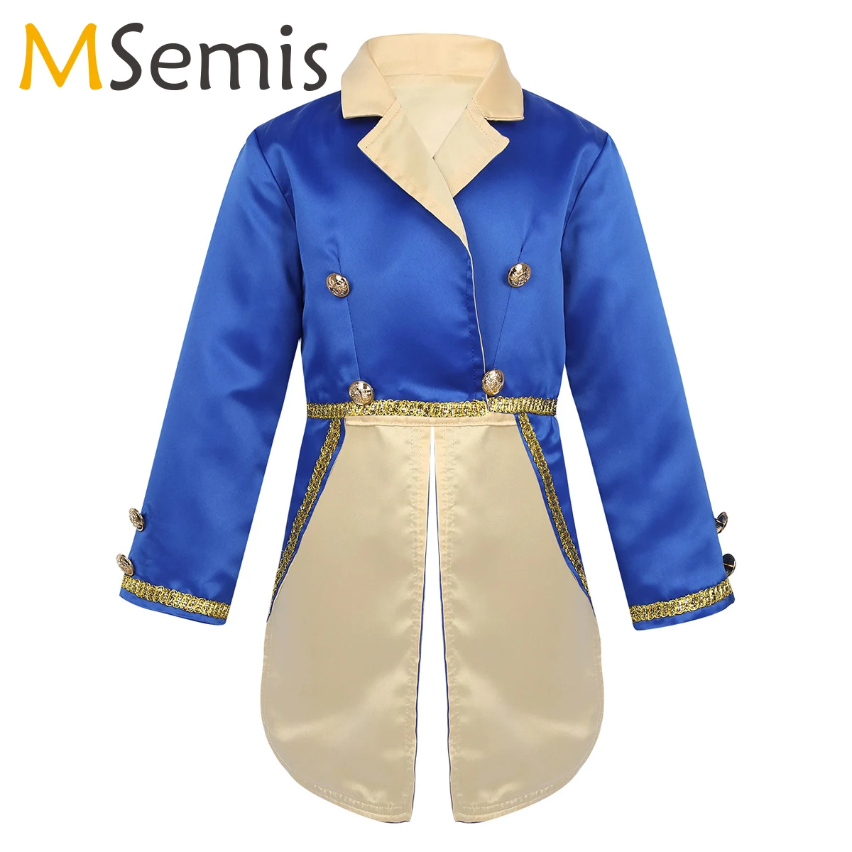 Костюм для мальчиков с принцом, куртка-смокинг с отложным воротником и длинными рукавами, Детский костюм на Хэллоуин, косплей, день рождения, тематическая вечеринка, пальто