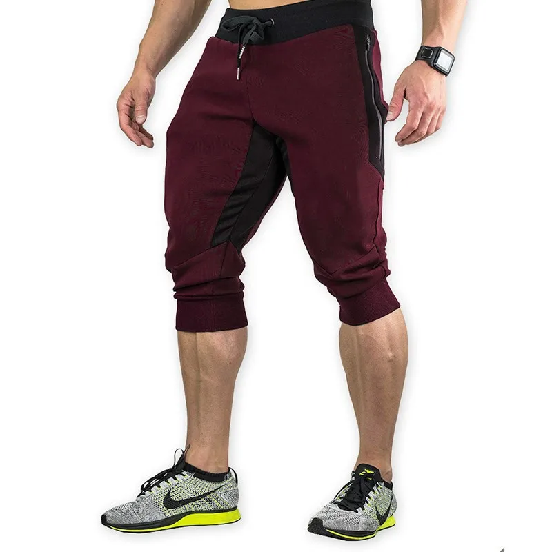 Новинка 2021, мужские эластичные шорты на молнии с карманами для фитнеса, мужские Модные шорты из смесового хлопка, шорты для бега, мужские спортивные брюки