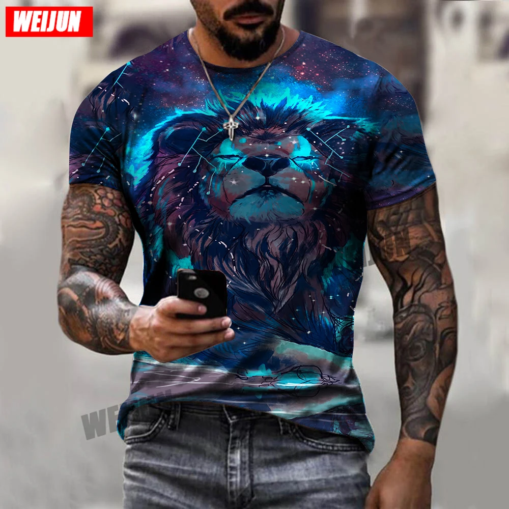 Футболка мужская с 3d принтом льва, модная уличная одежда в стиле х...