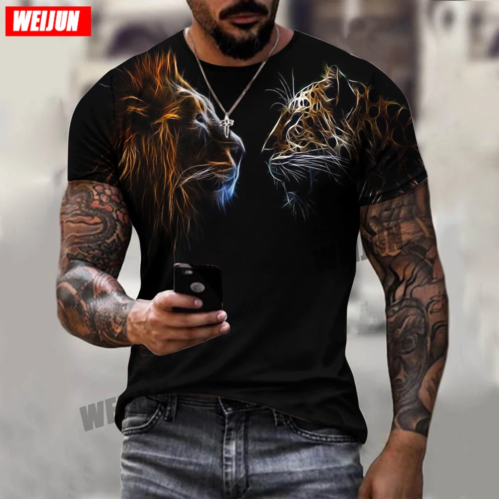 Футболка мужская и женская с 3D принтом тигра и Льва, модная улична...