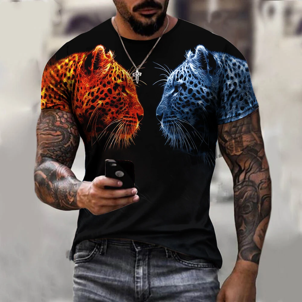 Футболка мужская с коротким рукавом, модная рубашка с принтом тигра...