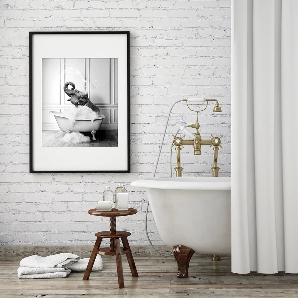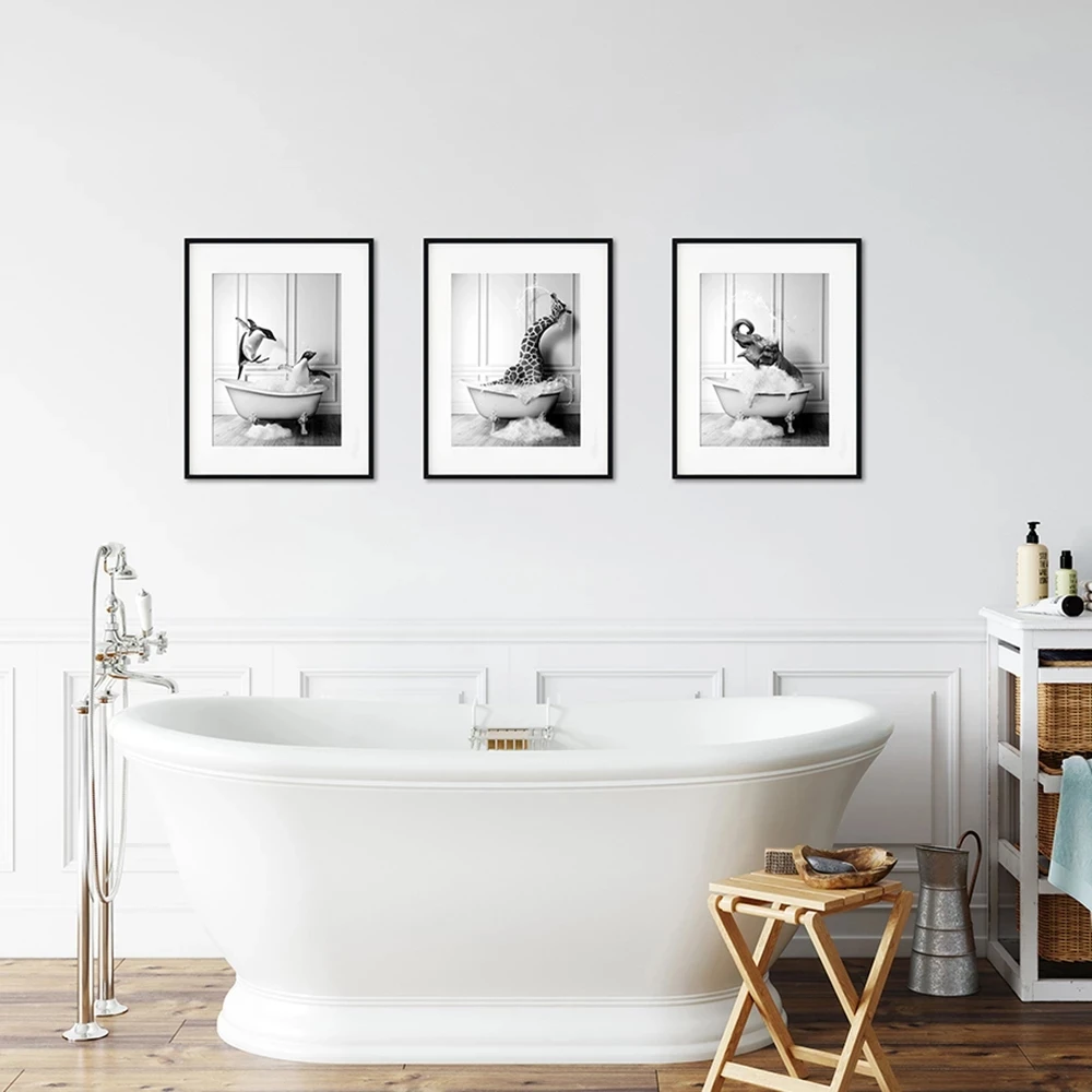 Черно-белые животные для ванной, художественные принты, слон, Зебра, Пингвины, жираф, постер на холсте, скандинавские настенные картины, декор для ванной и туалета