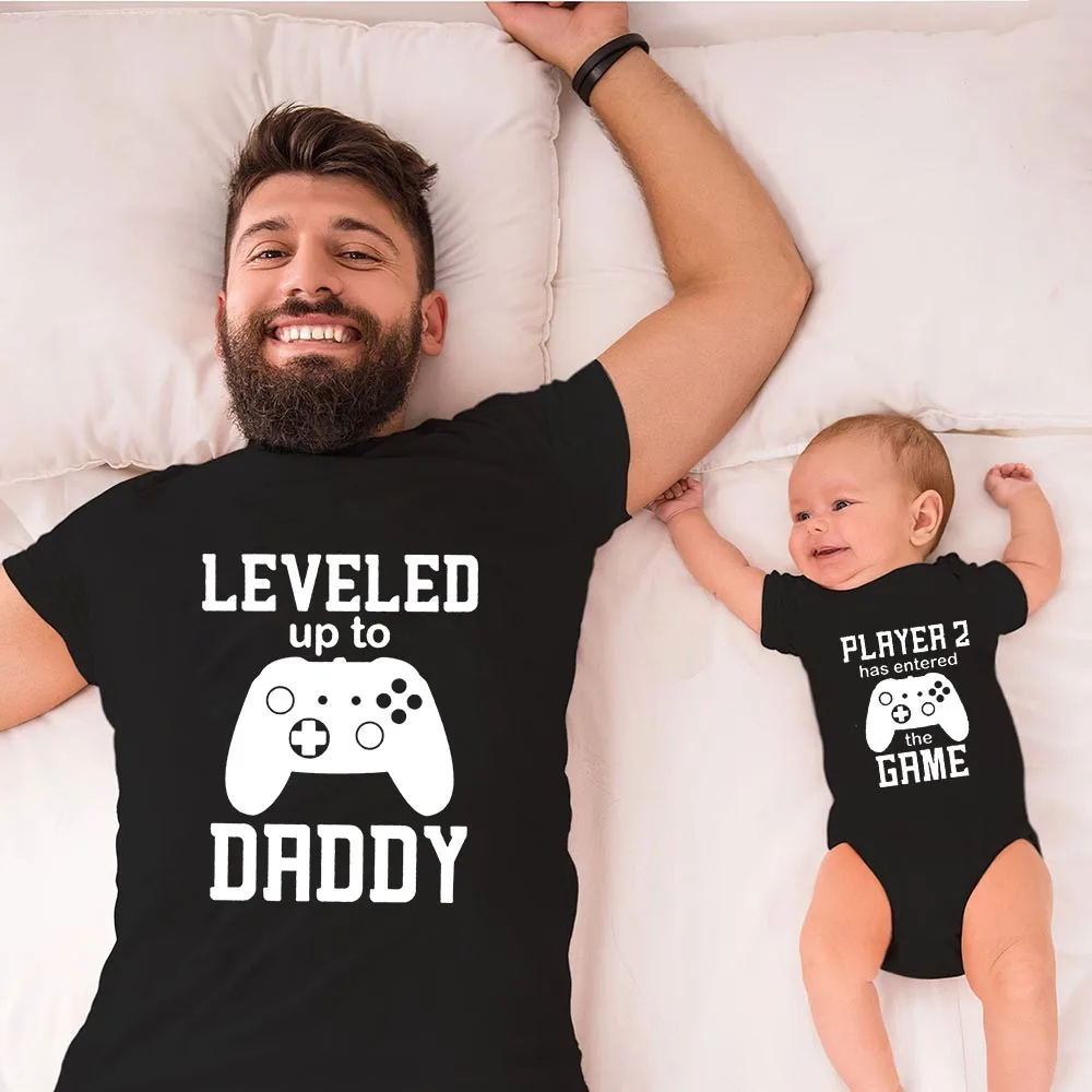 Игрок 2 Войдите в игру, выровненные до папы футболки, папа и сын, парные Семейные смешные футболки, детский комбинезон, реальный подарок