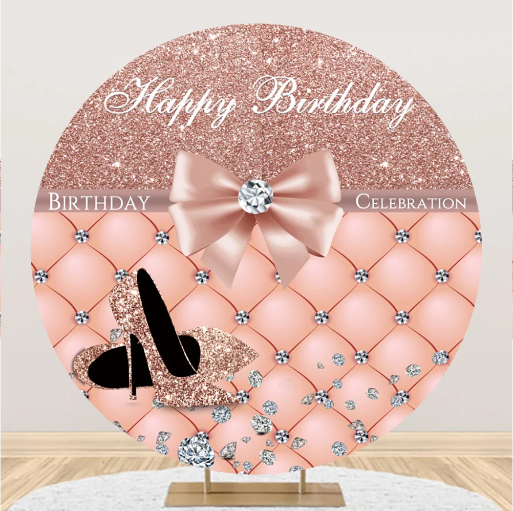 Пользовательский женский день Рождения Вечеринка круглый фон для фотографии яркий бриллиант высокие каблуки бант матовый романтический розовый корний диван фон