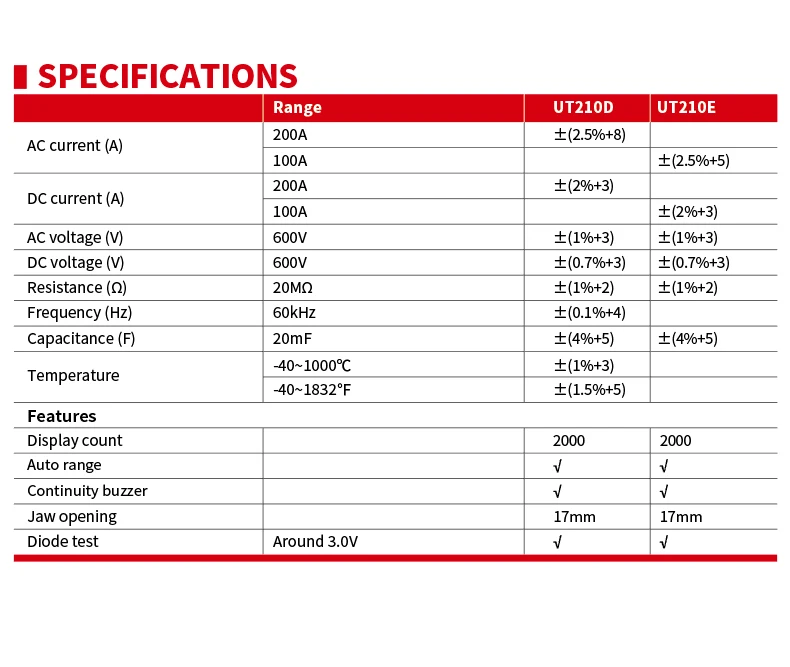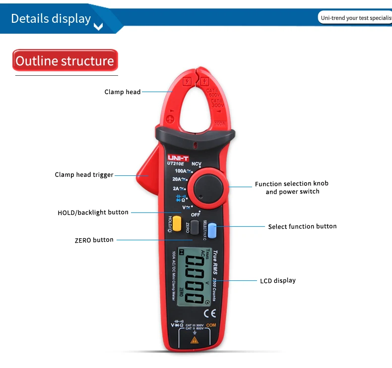 UNI-T Мини цифровой токометр переменного тока постоянного тока Амперметр Вольтметр True RMS 100A тестер сопротивления частоты UT210E
