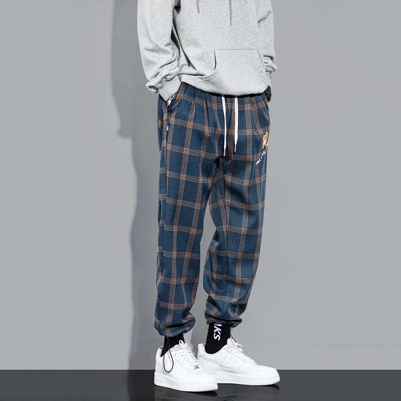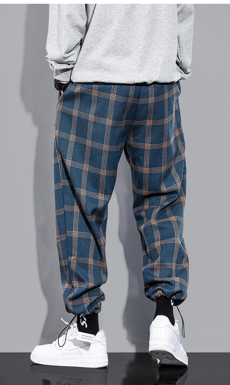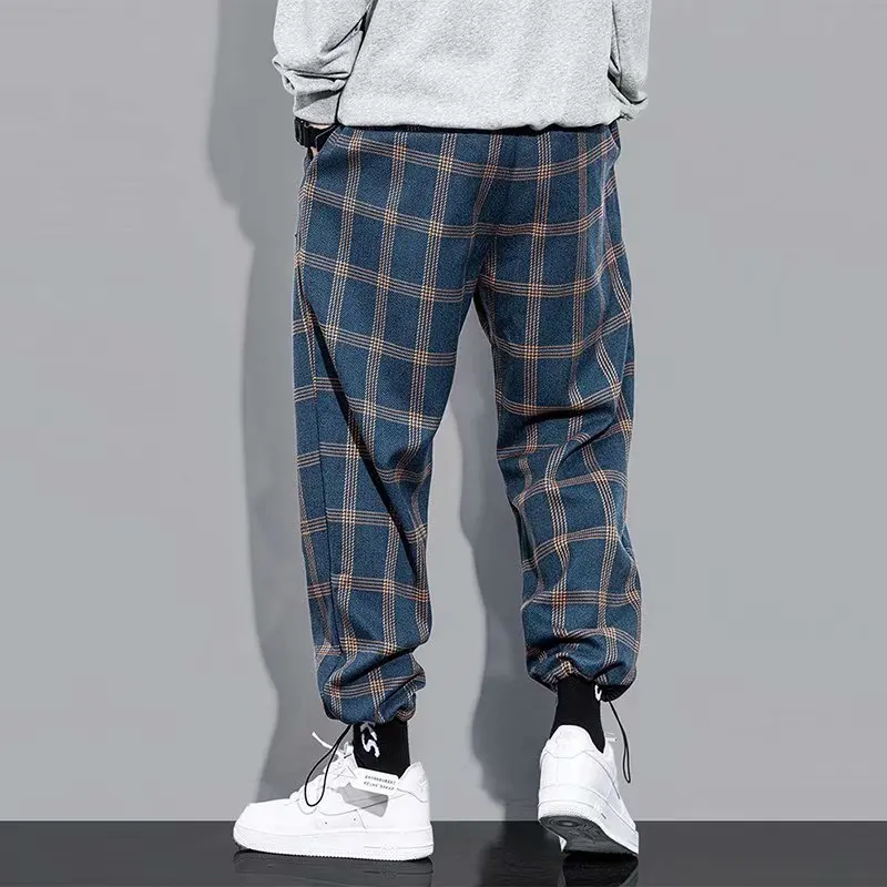 Джоггеры ZITY мужские в стиле хип-хоп, тренировочные штаны с кулиской, уличная одежда в Корейском стиле, Синие Клетчатые брюки, прямые штаны-султанки, 2021