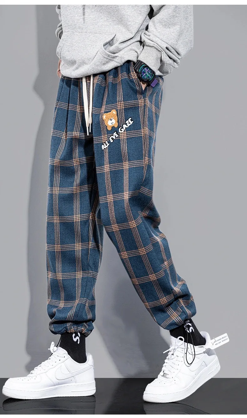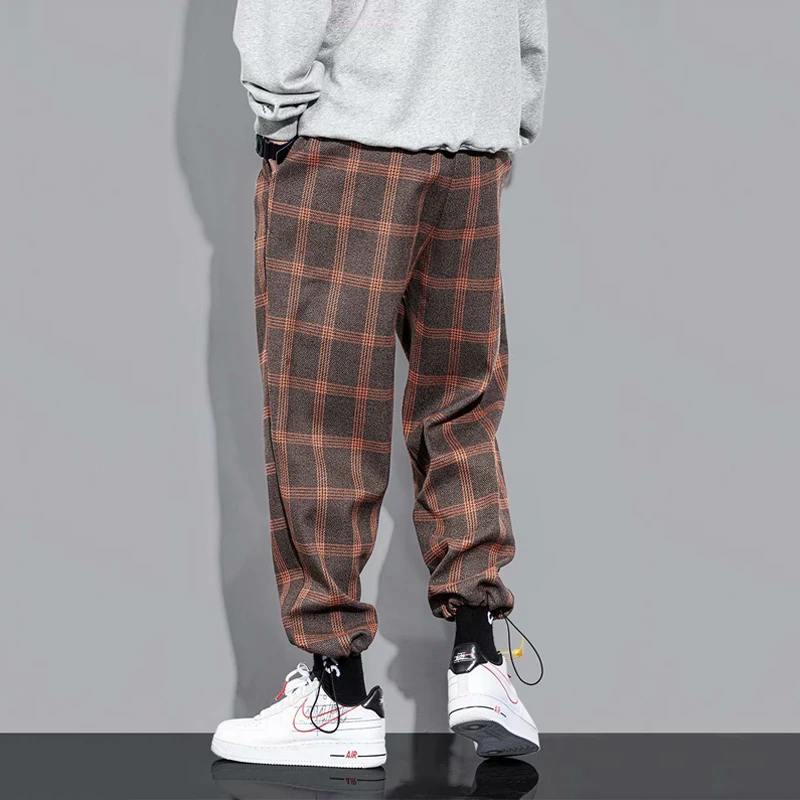 Брюки мужские клетчатые прямые, на шнуровке, в стиле хип-хоп