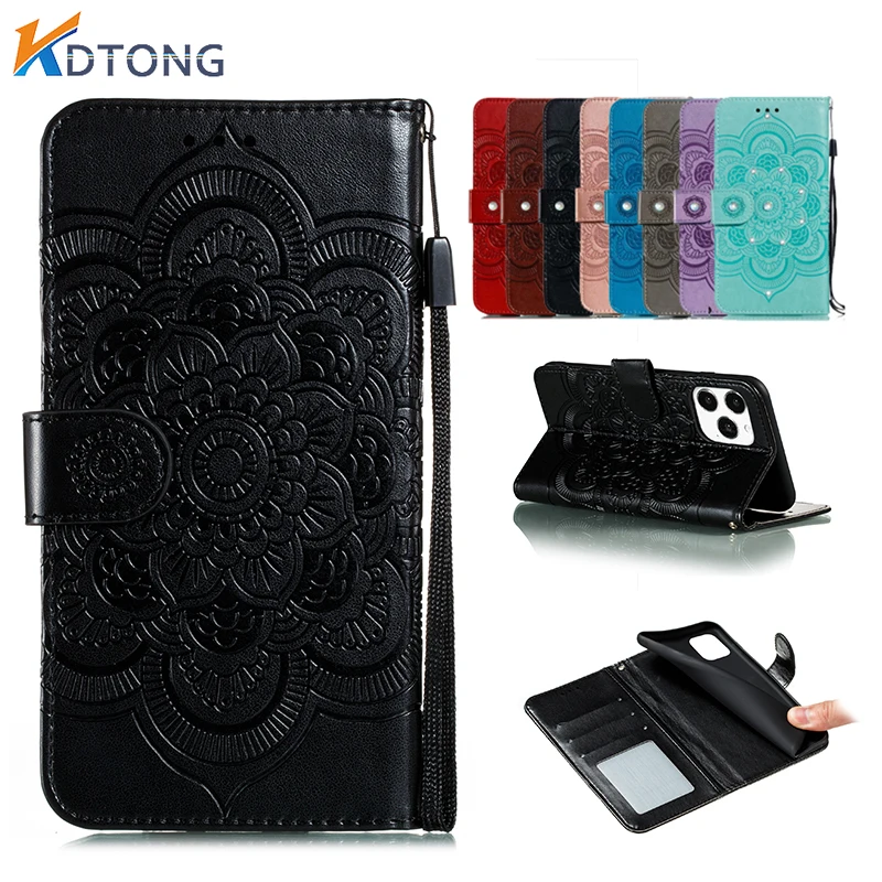 ● Скрытая подставка, с карманом для карт, с тиснением мандалы, с ремешком