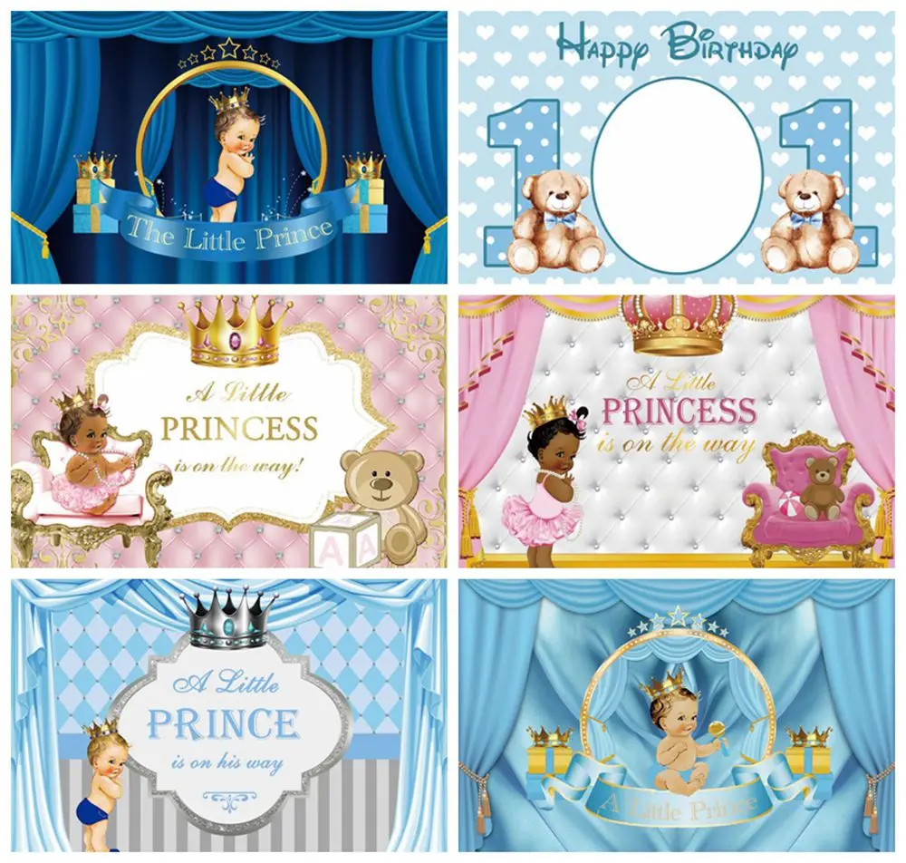 Фон для студийной фотосъемки новорожденных с изображением принцессы принца мальчика и девочки