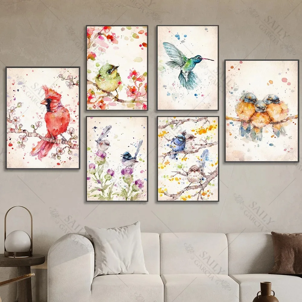 Абстрактная стена с колибри и блестками, Художественная печать, картины акварелью, животными, птицами, холст, живопись, Современная отделка спален постеры
