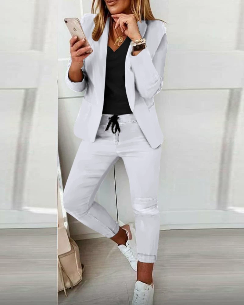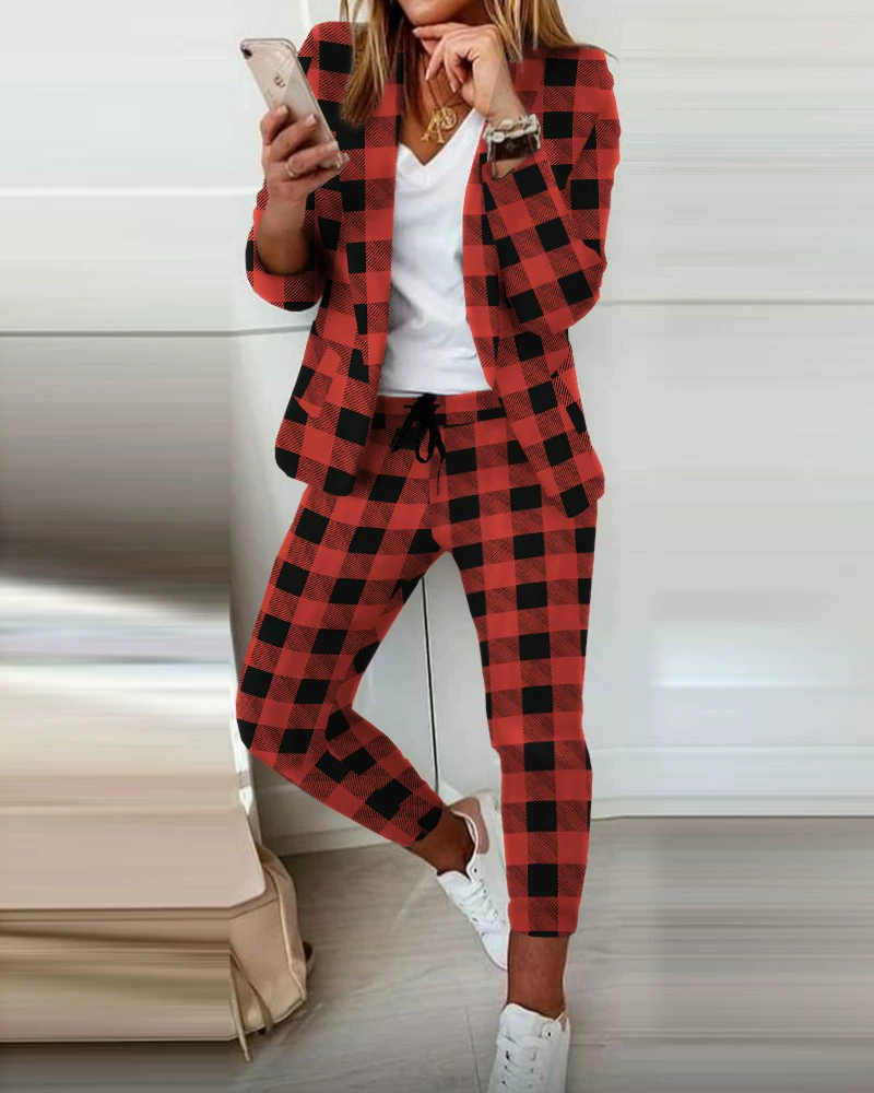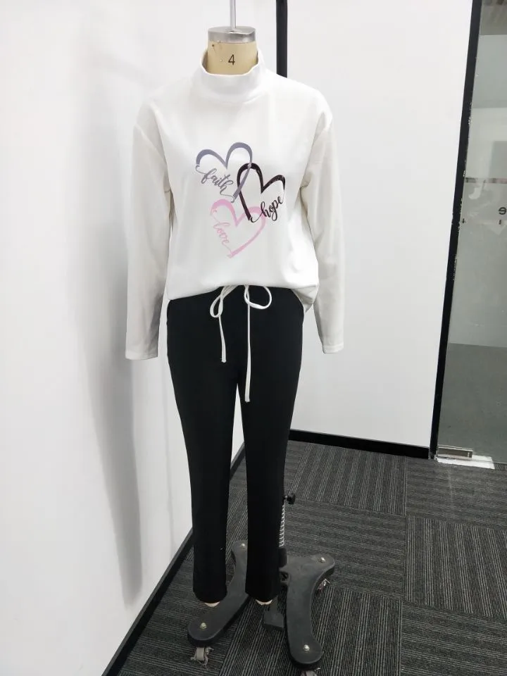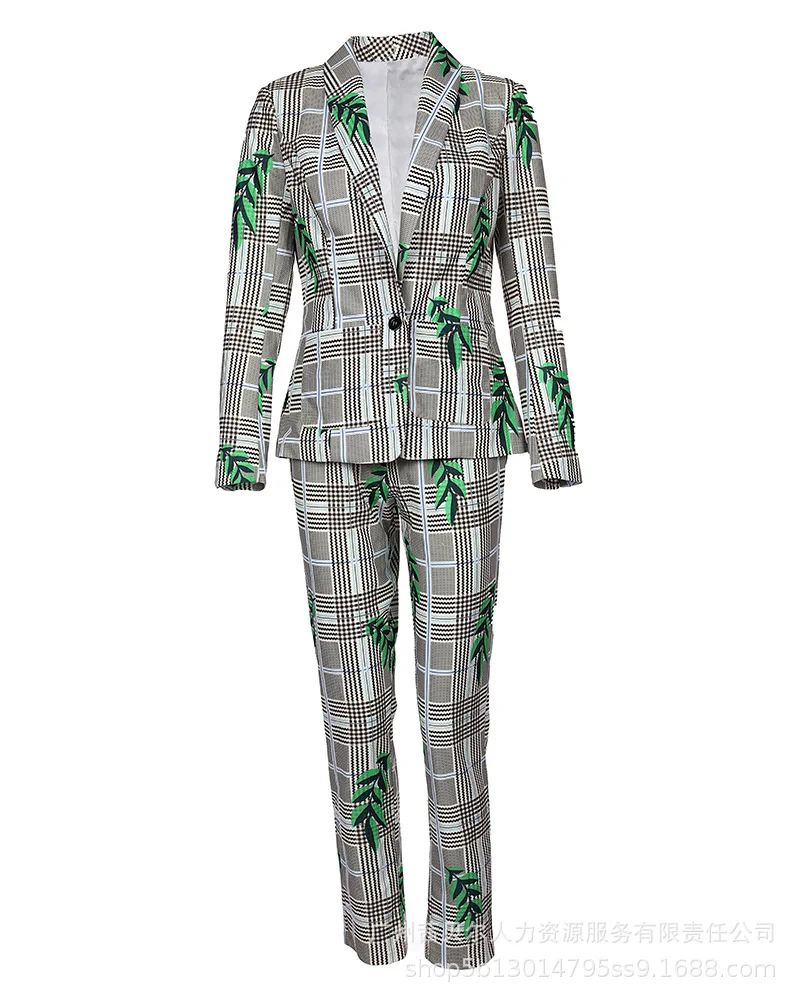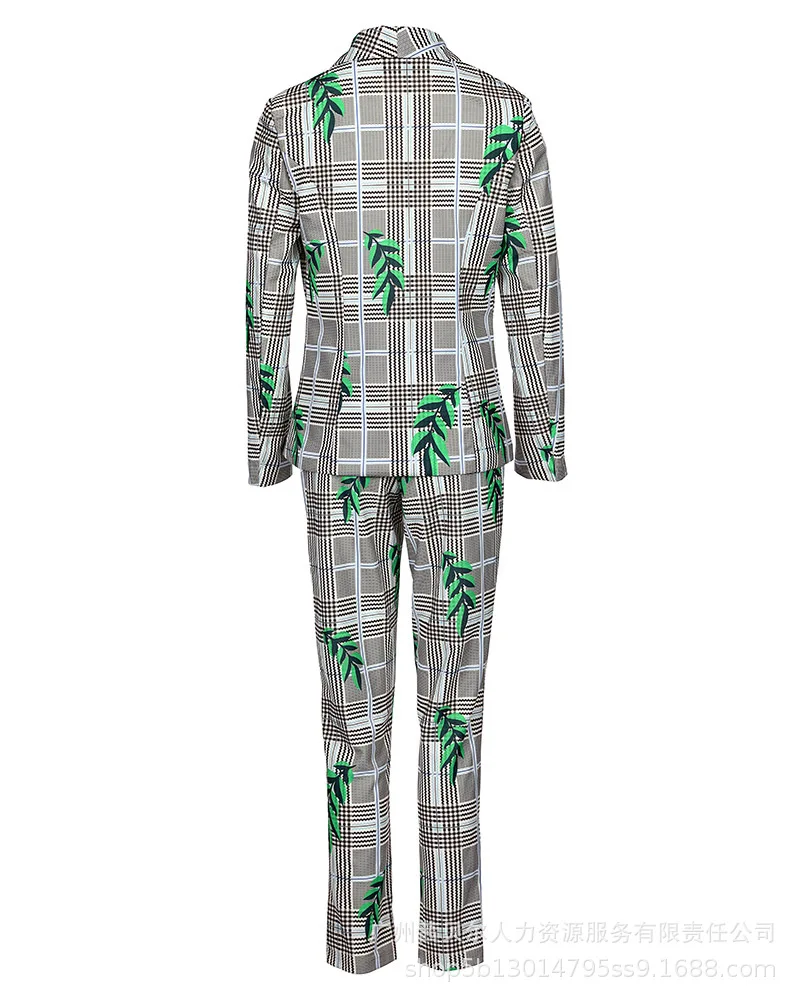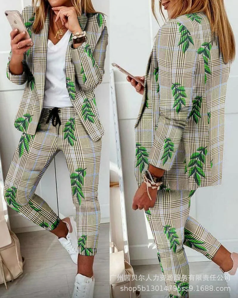 Женский брючный костюм, Элегантная блузка и брюки с принтом, повседневный костюм для бега, осень 2021