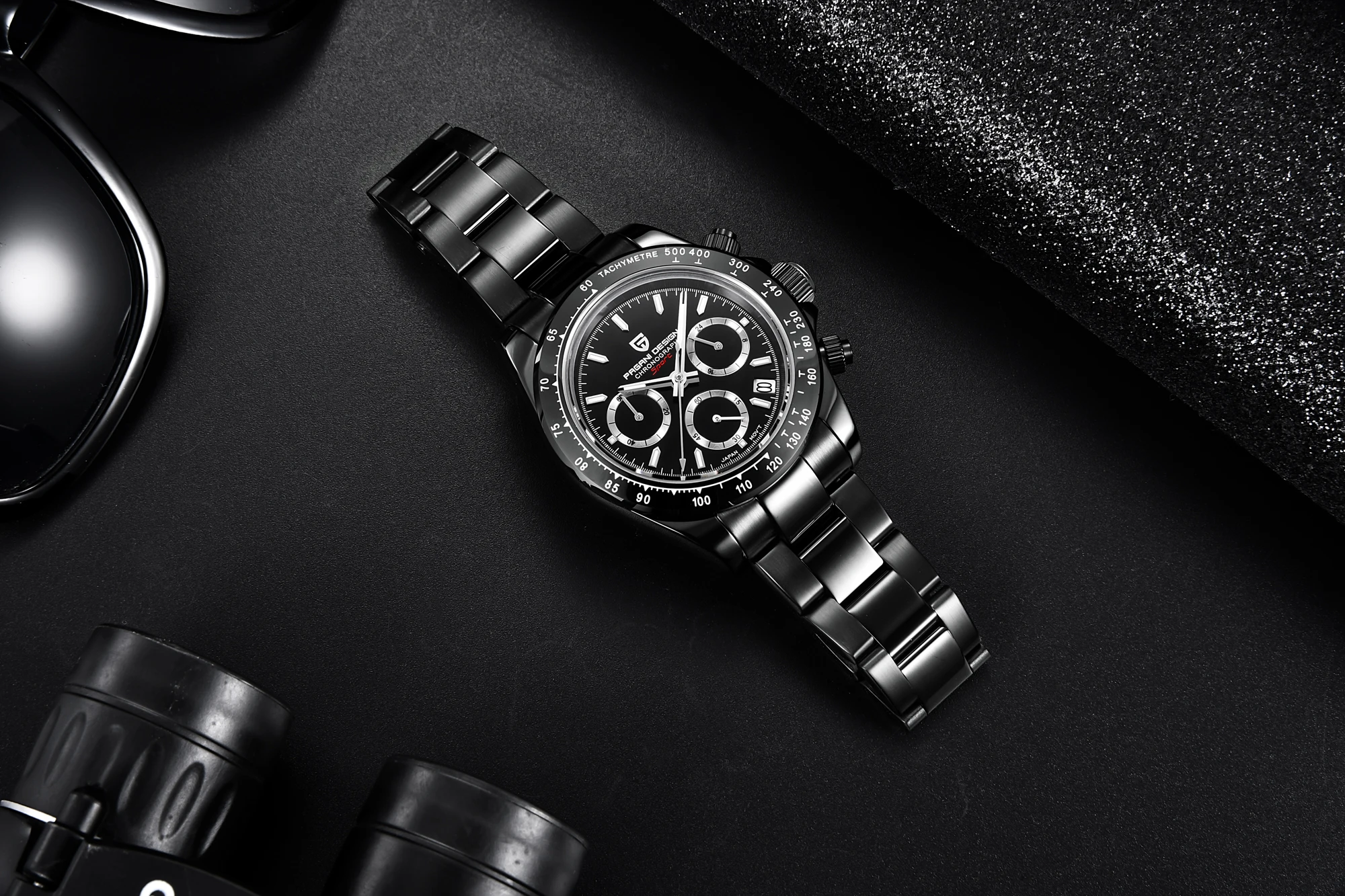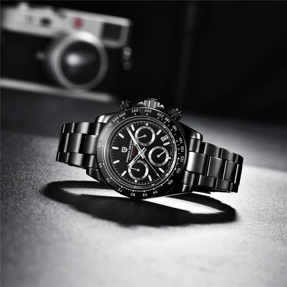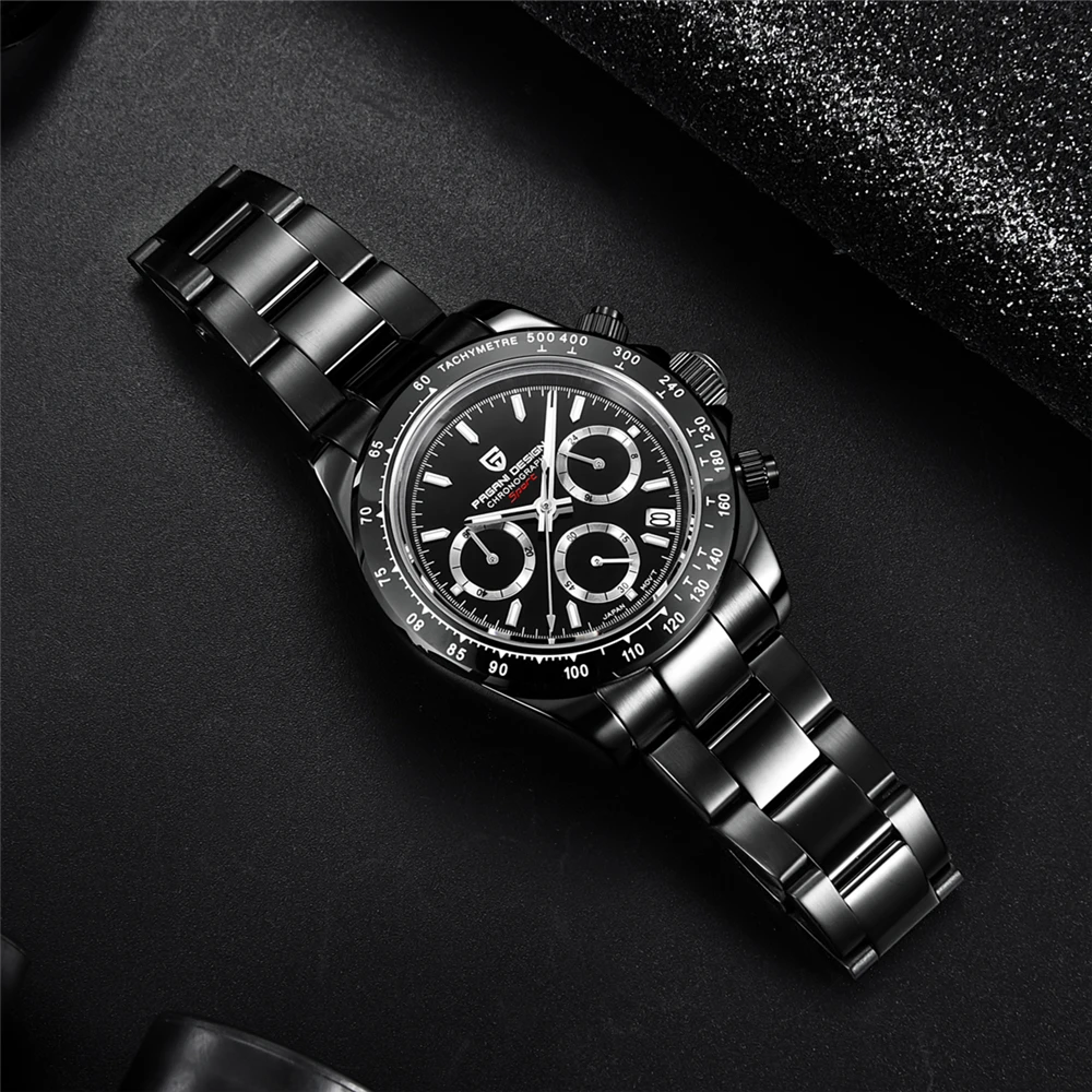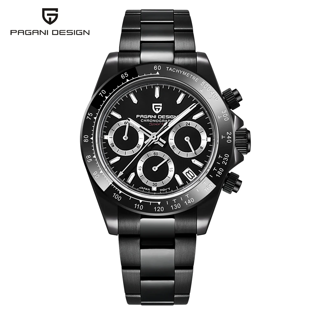 Часы PAGANI Design Мужские Кварцевые водонепроницаемые, черные брендовые из нержавеющей стали с сапфировым стеклом и хронографом, 2021