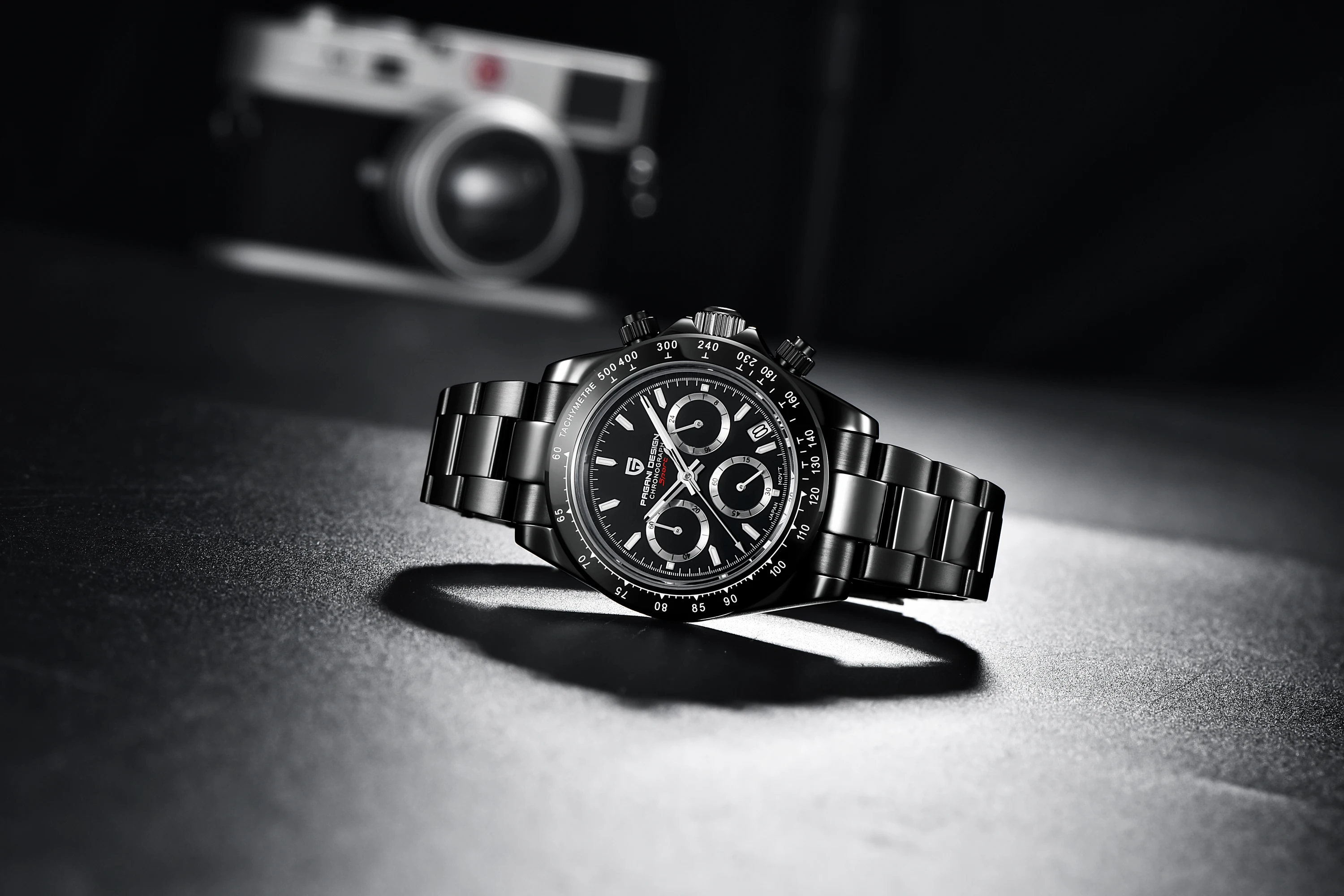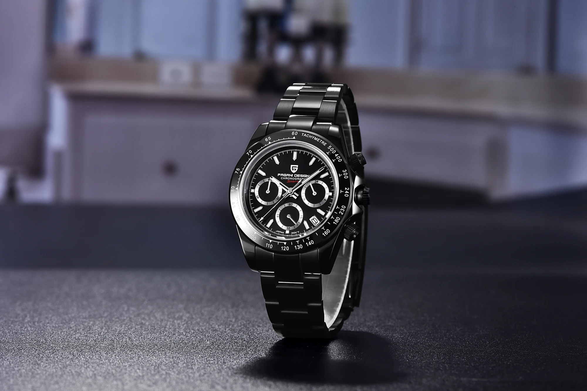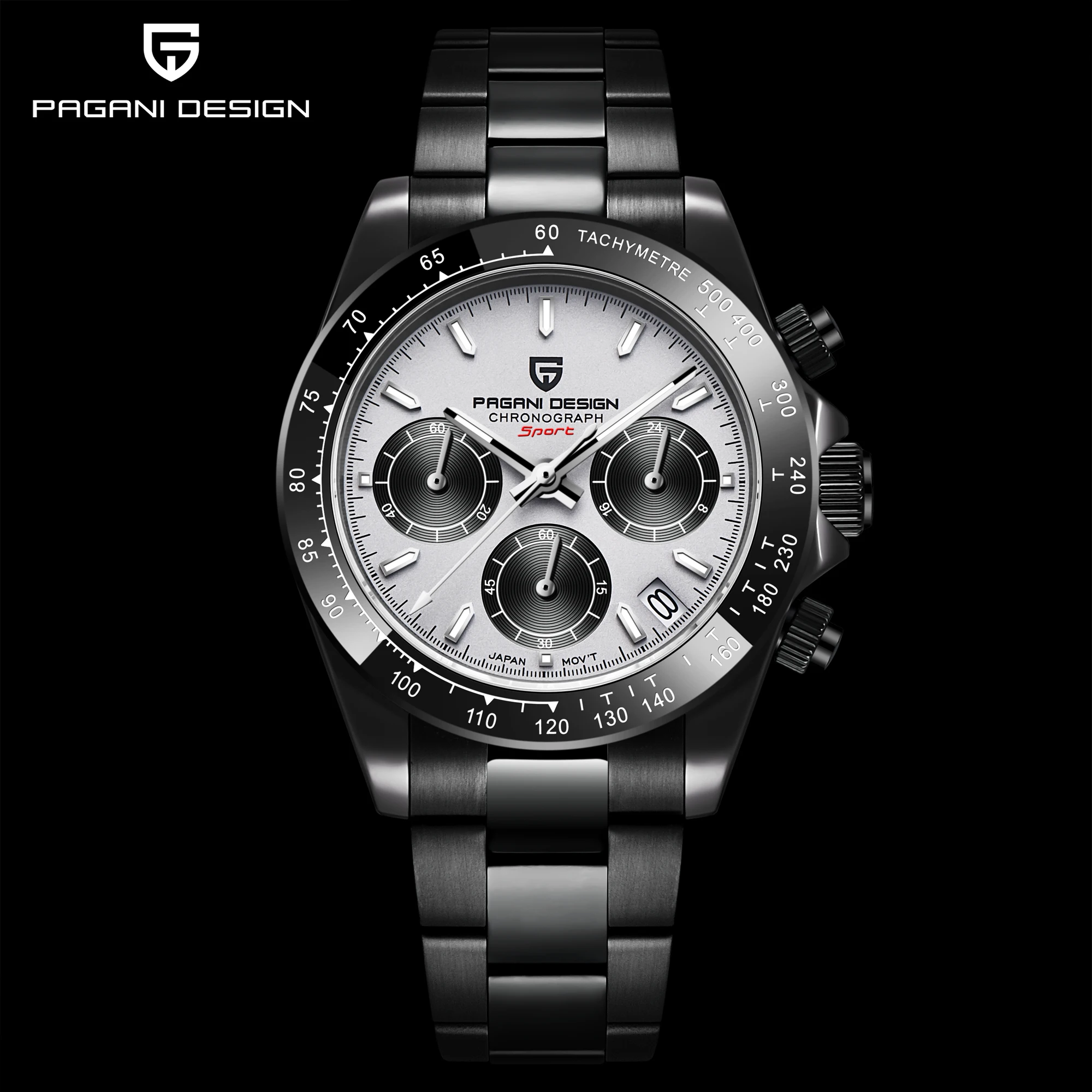 Часы PAGANI Design Мужские Кварцевые водонепроницаемые, черные брендовые из нержавеющей стали с сапфировым стеклом и хронографом, 2021