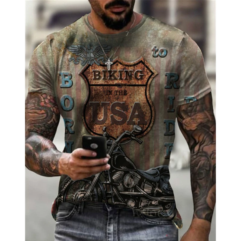 Летняя мужская футболка, уличная мода, мотоциклетная 3D одежда; Муж...