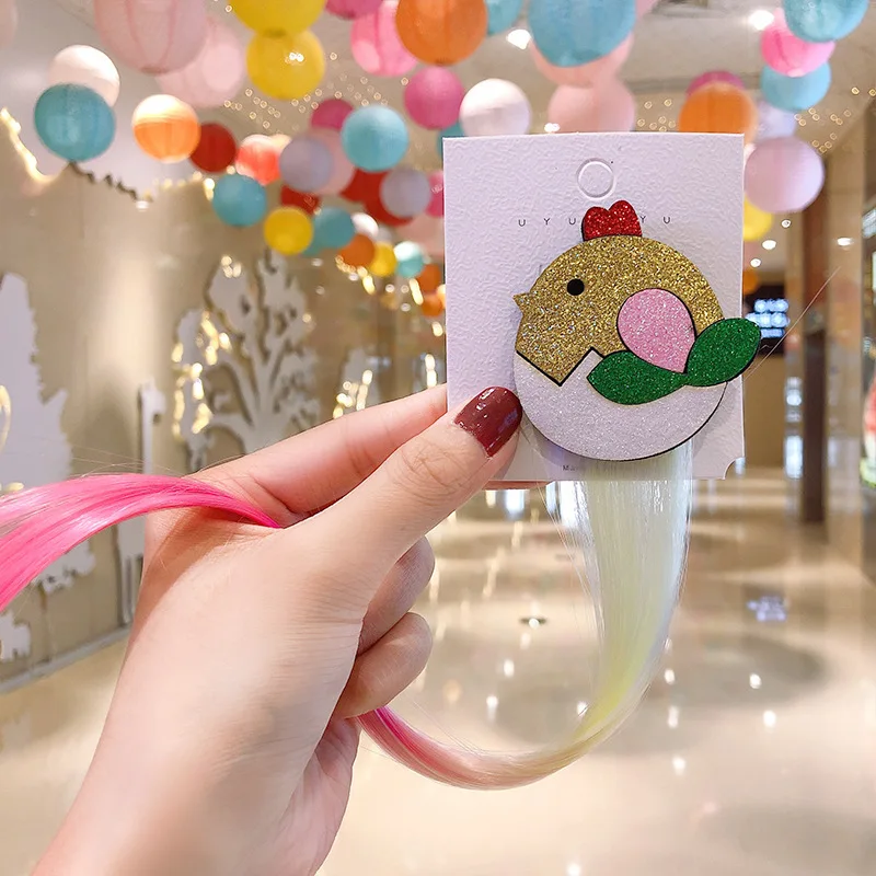 Детские Мультяшные парик цвета радуги заколки для волос в виде един...