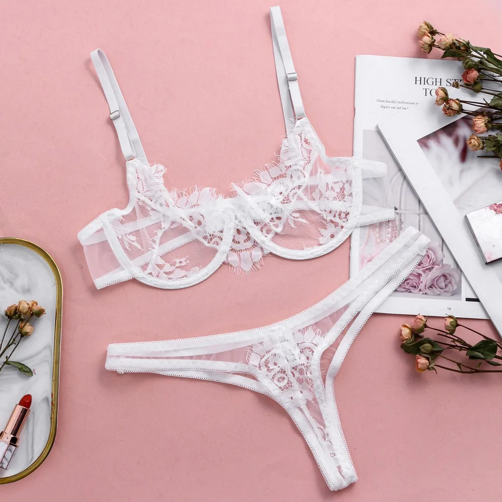 Белье Женское кружевное нижнее Белье из 3 предметов с стальными кольцами, бюстгальтер, трусики, стринги, Соблазнительный комплект нижнего белья, одежда для сна, Порно