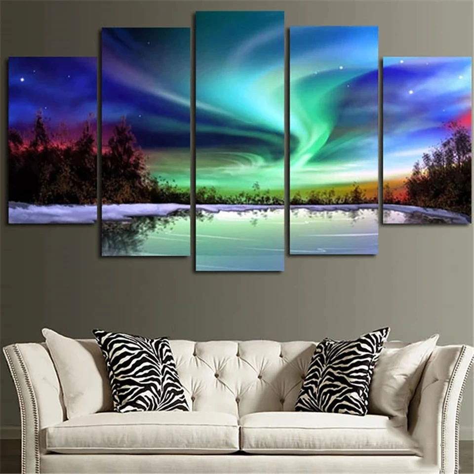 Современная живопись, Hd Печатный постер на холсте, 5 панелей, Северные огни, Модульная картина, настенное искусство, домашний декор, рамка для гостиной