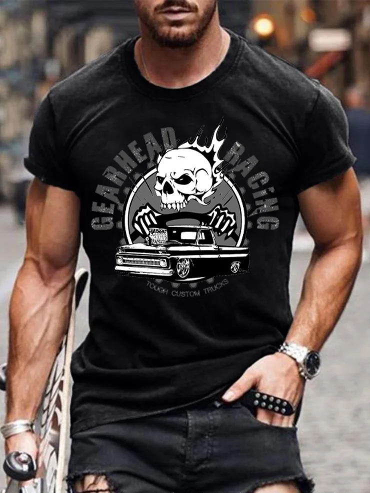 Футболка мужская оверсайз с коротким рукавом, мотоциклетный топ с н...